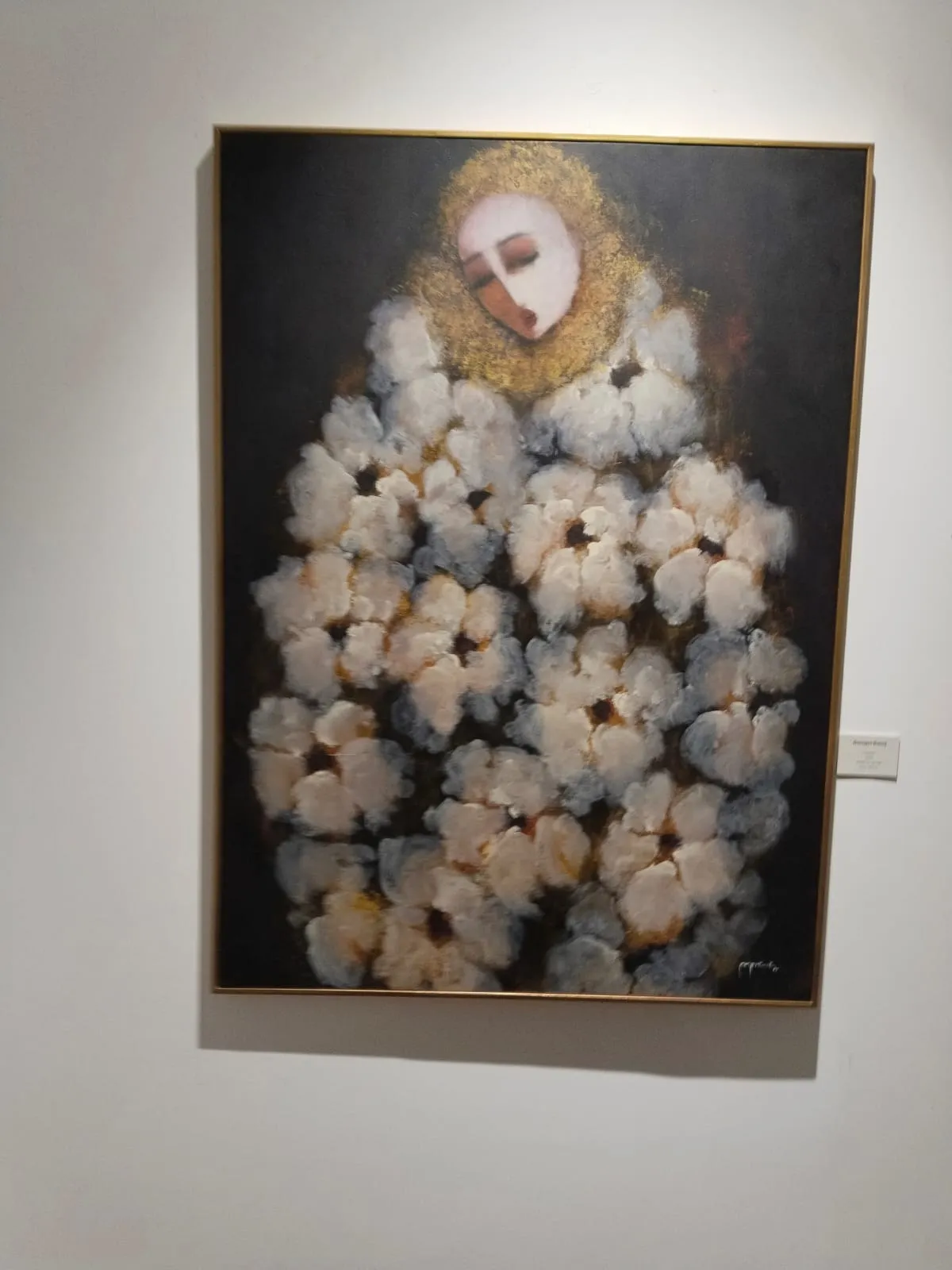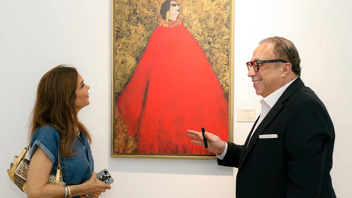 In A Night of Love, Lebanese artist Georges Bassil returns to the tenderness of a bygone era. Through dreamlike female figures, rich florals, and a palette drawn from memory—deep reds, soft golds, and shadows of black—Bassil paints a personal ode to beauty, nostalgia, and emotional reverence.