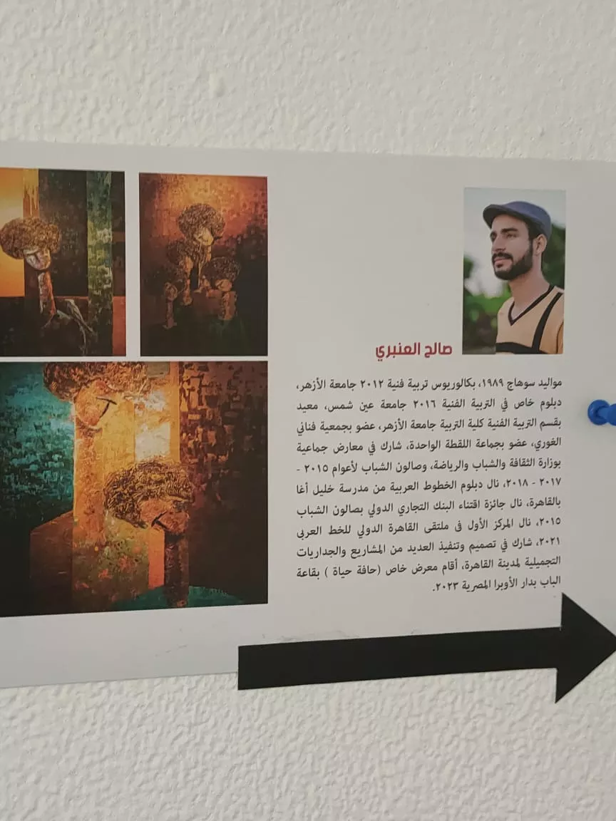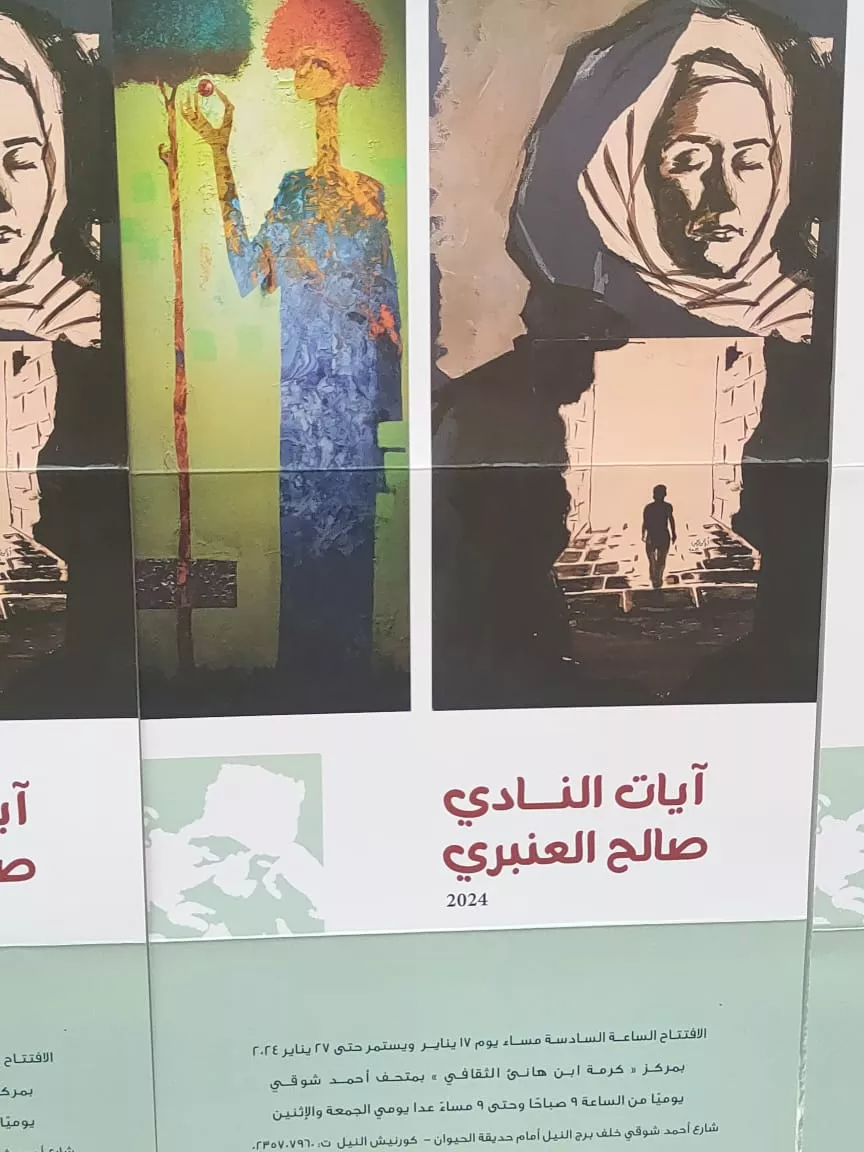 Saleh Al-Anbari 2024 The opening is at six in the evening on January 17 and continues until January 27, 2024 at the Karma Ibn Hani Cultural Center, in the Ahmed Shawqi Museum. Daily from 9 am to 9 pm except Friday and Monday Ahmed Shawky Street behind the Nile Tower in front of the Zoo - Nile Corniche Tel: 0235707960