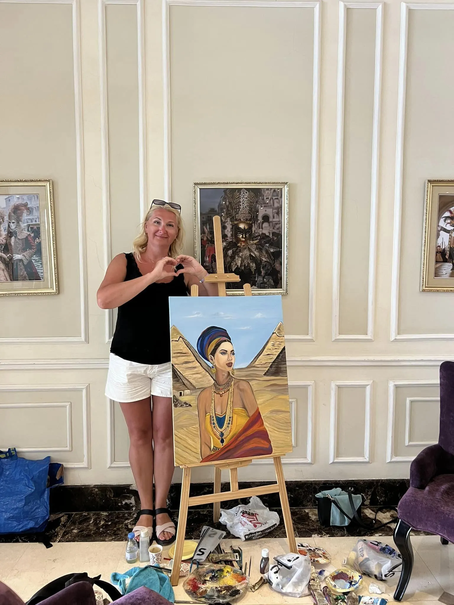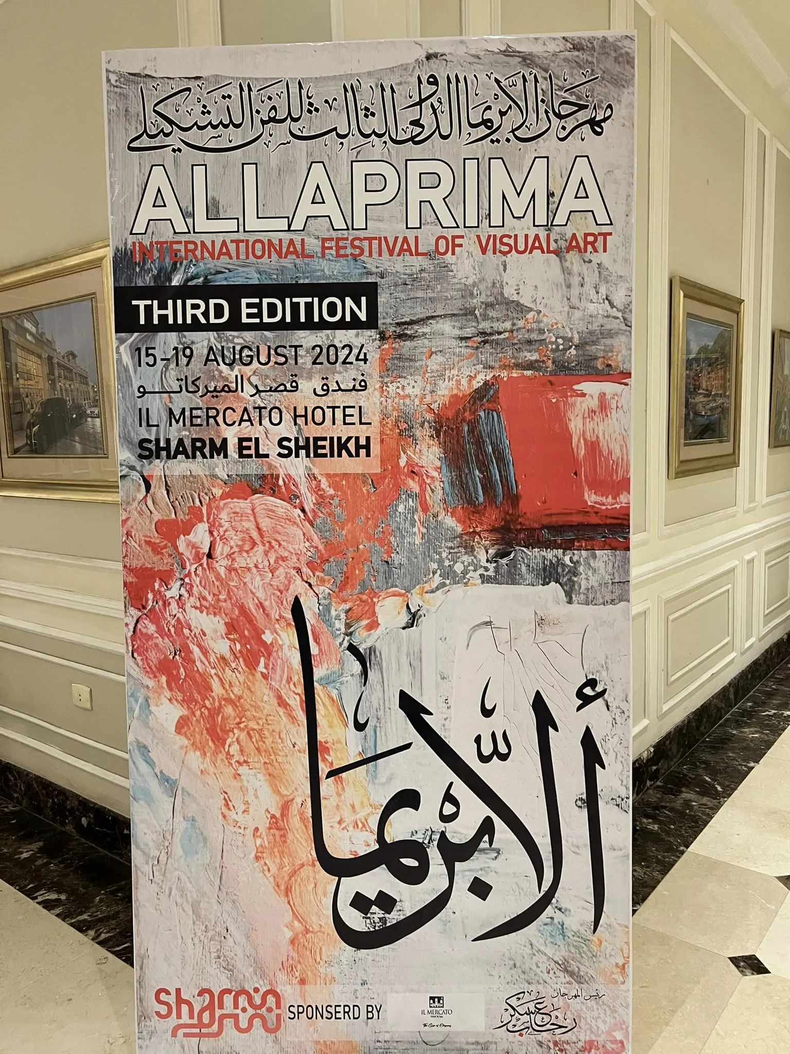 The Third Alaprima International Fine Arts Festival Date: Starting from August 15 to August 19, 2024 Location: Sharm El Sheikh City... South Sinai Hotel: (El Mercato Palace) Hotel • 5-star deluxe hotel • Rooms with modern and luxurious designs • It includes a private beach (White Beach) from the best beaches and another rocky beach • The hotel is a European-style palace system • It is located in the most upscale areas of Sharm El Sheikh, El Mercato Street in El Hadaba and Alf Leila Wa Leila • The hotel has 4 swimming pools • Excellent hotel service and very high rating Objective: Spreading culture, activating the fine arts movement, exchanging schools between artists, and holding fine arts workshops Participants: An international festival with artists from all Arab and foreign countries …………………………………………. * The Third Alaprima International Fine Arts Festival organized by Alaprima Company for the Management and Organization of Cultural Events. * The festival is 5 days and 4 nights * Cultural, artistic, entertainment and tourist festival * Including transportation from Cairo to Sharm El Sheikh and vice versa * Three meals (breakfast, lunch and dinner) * The festival provides drawing tools from Kanfas and Alwan and each artist must bring his own drawing tools from brushes, knives and others due to the difference in each artist's drawing technique * Holding an exhibition and an honoring ceremony at the end of the festival * Media and press coverage * Parties, seminars and a wonderful tourist program. . ..... Festival program: First day: * Arrival to Sharm El Sheikh and accommodation at the Mercato Hotel * Lunch: Open buffet * Enjoying the hotel facilities * Meeting of artists to get to know each other * Dinner: Open buffet * A special party at the hotel for artists Second day: * Breakfast: Open buffet * Gathering for drawing * Lunch: Open buffet * Following the drawing with musical performance. * Dinner: Open buffet * Gathering for a free tour in the old market Day 3: * Breakfast: Open buffet * Gathering for a sea trip * Lunch: at Farsha Cafe, one of Sharm's distinctive landmarks * Return to the hotel and complete the paintings and submit them * Dinner: Open buffet * Night party at the hotel for artists Day 4: * Open buffet breakfast and enjoy the hotel facilities. * Open buffet lunch then prepare for the exhibition * Opening of the exhibition .. then a party honoring the artists in the presence of important figures, celebrities and sponsors in Sharm El Sheikh * Dinner at the hotel then go to Soho Square to enjoy the atmosphere of Sharm El Sheikh. Day 5 *Open buffet breakfast then gathering to take souvenir photos *Leaving the hotel and farewell ..... For reservations and inquiries: President of the Alaprima International Festival for Fine Arts (Rehab Askar) .... .00201210527004 With my wishes for you to enjoy a special and different festival