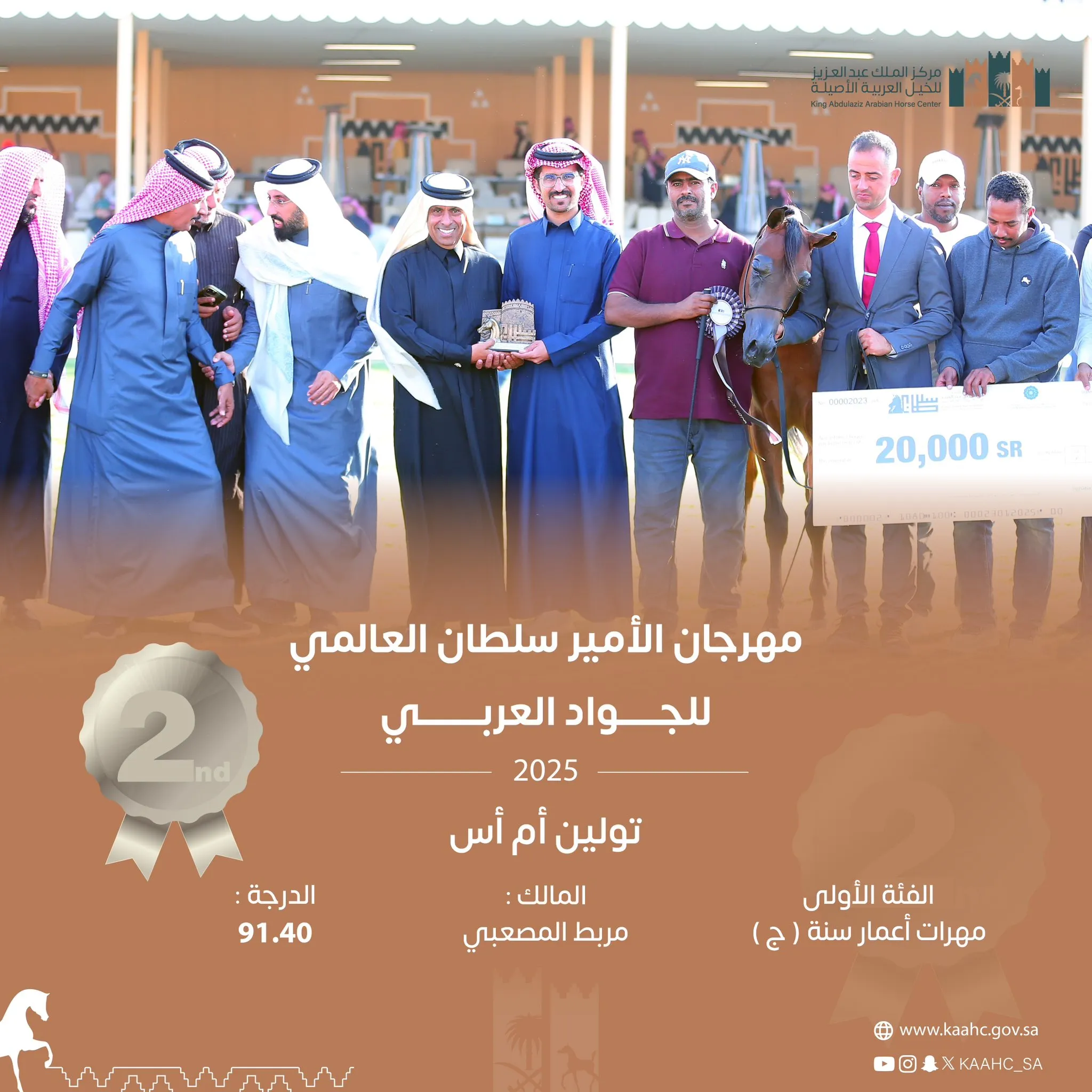 12:30 First category Fillies aged one year / (A) 13:20 First category Fillies aged one year / (B) 14:10 First category Fillies aged one year / (C) 15:00 Stop for lunch break and Asr prayer 16:00 First category Fillies aged one year / (D) 16:50 Second category Fillies aged two years / (A) 17:30 Stop for Maghrib prayer 17:45 Second category Fillies aged two years / (B) 18:25 Third category Fillies aged three years 19:25 Fourth category Mares aged 4-6 years. 20:25 Category 5 Mares aged 7-9 years 21:05 Category 6 Mares aged 10 years and above