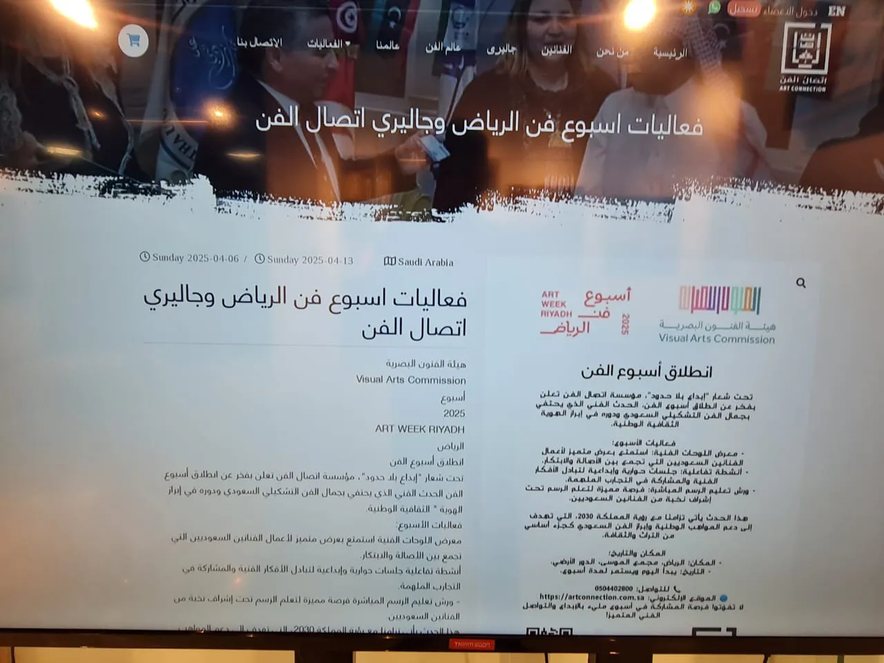 Visual Arts Commission Visual Arts Commission Week 2025 ART WEEK RIYADH Riyadh Launching Art Week Under the theme "Creativity Without Borders," Art Connection proudly announces the launch of Art Week, an artistic event that celebrates the beauty of Saudi fine art and its role in highlighting the national cultural identity. Week Events: Art Exhibition: Enjoy a distinguished display of works by Saudi artists that combine authenticity and innovation. Interactive Activities: Dialogue and Creative Sessions to Exchange Artistic Ideas and Participate in Inspiring Experiences. Live Drawing Workshops: A unique opportunity to learn drawing under the supervision of a select group of Saudi artists. This event coincides with the Kingdom's Vision 2030, which aims to support national talent and highlight Saudi art as an essential part of heritage and culture. Location and Date Location: Riyadh, Al-Mousa Complex, Ground Floor. Date: Starts today and continues for a week. Contact: 0504402800 https://artconnection.com.sa Website Don't miss the opportunity to participate in a week filled with creativity and artistic communication. Distinguished Art Connection ART CONNECTION Drawing Workshop Program Offers 1. Sketch Your Ideas with Pencil and Charcoal: Express your ideas with the simplest and most powerful tools. 250 SAR 2. Learn Color Blending: Discover the beauty of color harmony in a professional manner. 250 SAR 3. Brush Painting Skills: Learn how to master brush movements to create stunning details. 350 SAR 4. Canvas Painting Basics: Explore the secrets of canvas painting and how to prepare for it. 390 SAR 5. Perspective and Dimensioning: Learn techniques for adding depth and realism to your paintings. 350 SAR 6. Shadow and Light: Bring your paintings to life using the contrast between shadows and highlights. 350 riyals 7. Introduction to Art Styles and Types: An artistic journey to understand different schools and styles. 400 riyals 8. The Art of Symbols: Learn how to express ideas through artistic symbols. 490 riyals 9. How to Draw Your Imagination into Reality: Free your creativity from imagination to tangible paintings. 490 riyals 10. How to Complete Your Painting on Time: Effective tips for organizing your time and producing your painting in record time. 1500 riyals Total 4820 riyals Art Week Offer 999 riyals Open for two months. Trainees can come at a time that suits them. Offer open for one year, 1999