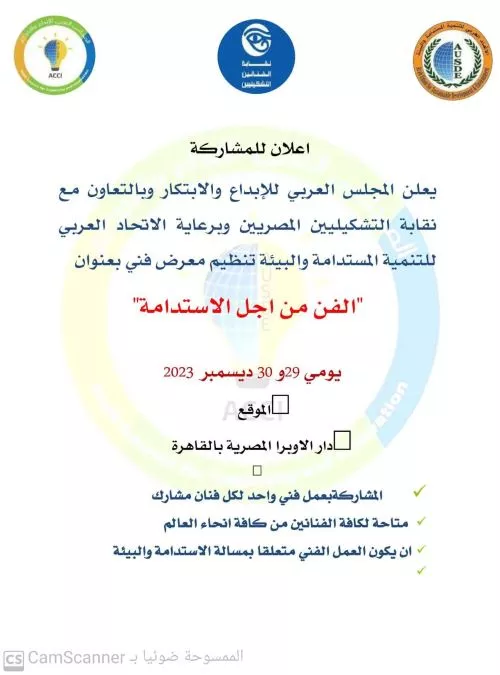 The Arab Council for Creativity and Innovation, in cooperation with the Egyptian Fine Artists Syndicate and sponsored by the Arab Union for Sustainable Development and Environment, announces the organization of an art exhibition entitled