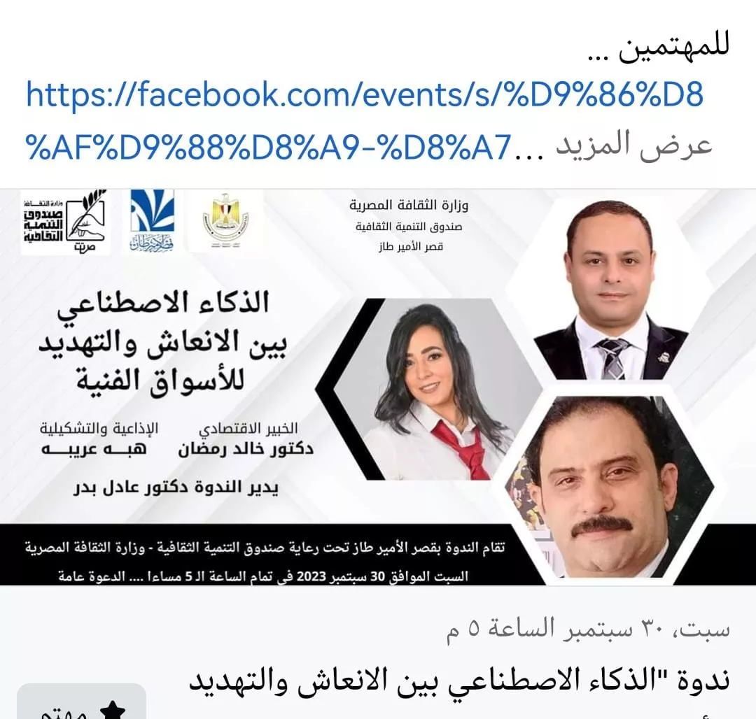 The symposium will be held at Prince Taz Palace under the auspices of the Cultural Development Fund - the Egyptian Ministry of Culture on Saturday, September 30, 2023 at 5 pm... Public invitation