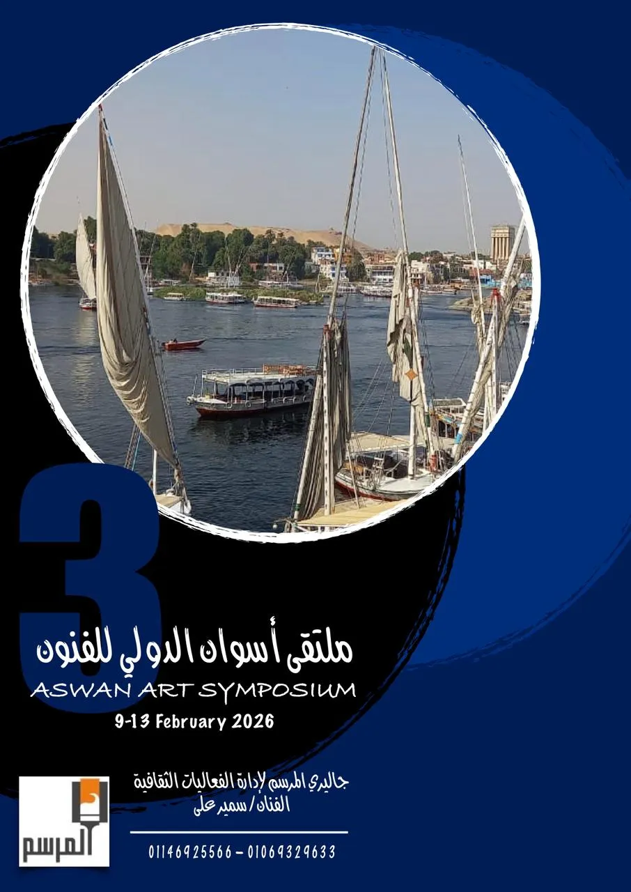 The 3rd Aswan International Art Symposium February 9-13 (4 nights - 5 days) Departure from Cairo on the evening of February 8 Return on the evening of February 13 The symposium provides accommodation in double rooms with breakfast and dinner included. It also provides materials and tools for workshops and an accompanying exhibition of the symposium's output. Media and press coverage is also included. Tour Program: Nubian Village - Botanical Garden - Philae Temple - Tombs of the Nobles Visit to Abu Simbel Temple is optional at an additional cost. Visit to Kela Beshe Temple and Crocodile Island is optional at an additional cost. The symposium retains one artwork from each participating artist. Participation Fee: Egyptian artist: 7,000 EGP Non-Egyptian artist (resident): 11,000 EGP Non-Egyptian artist: $450 USD Travel: VIP second-class train or tourist bus Artists can book their own sleeper train or flight according to their preference.