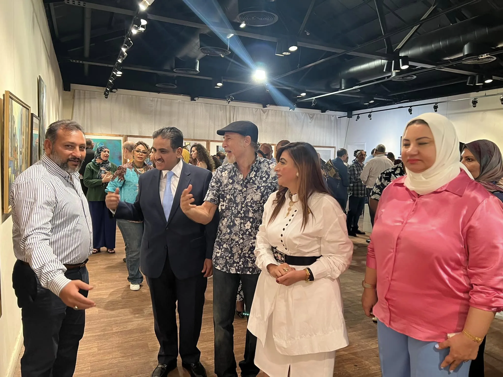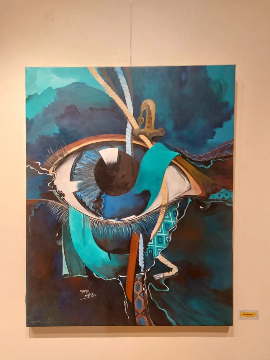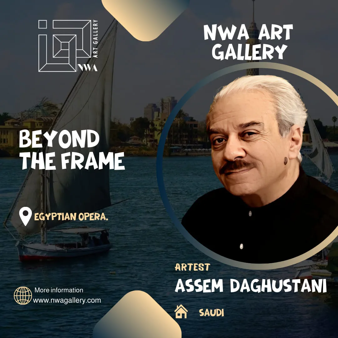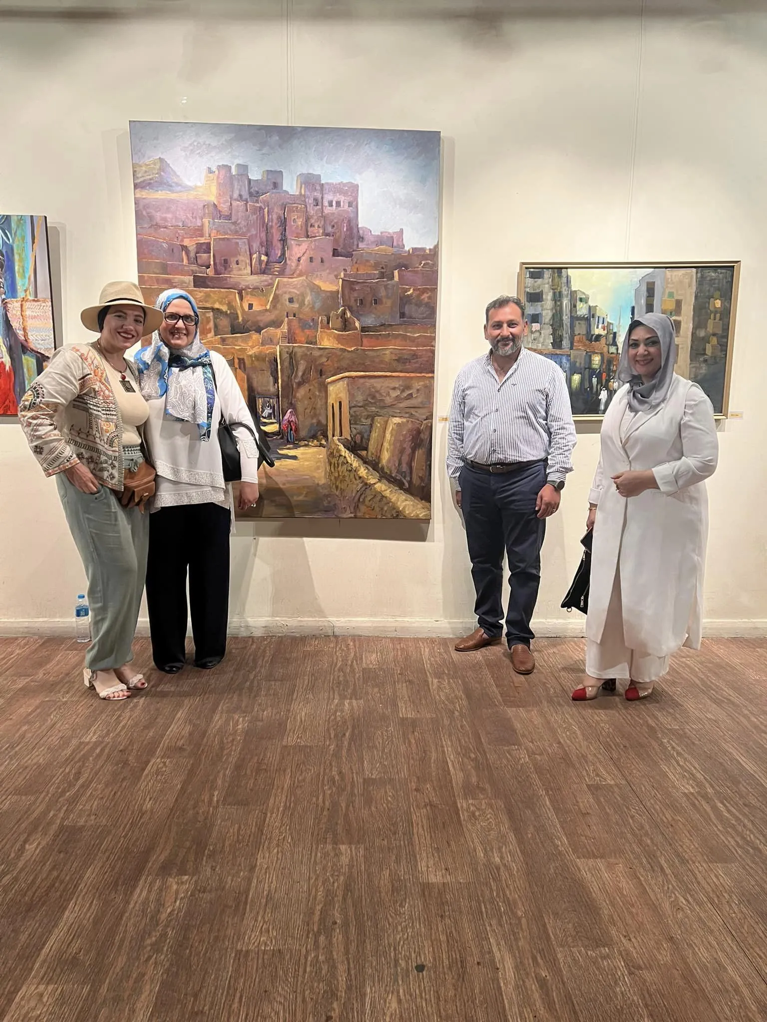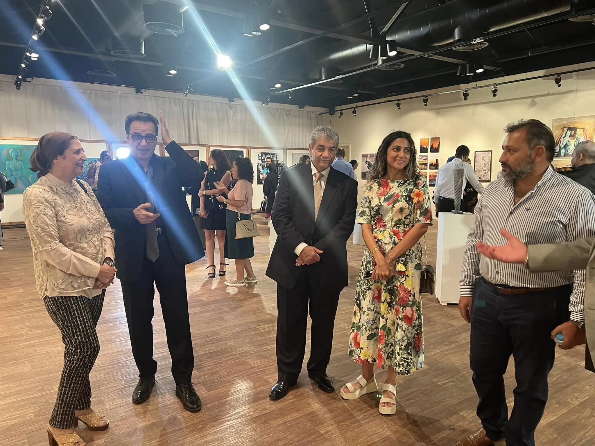 In an atmosphere full of friendliness and art, the head of the Fine Artists Syndicate, artist Tarek El-Komy, inaugurated the art exhibition (Beyond the Frame) at the Egyptian Opera House in the presence of the Deputy Ambassador of the Custodian of the Two Holy Mosques in Cairo, Abdul Rahman bin Salem Al-Dahas, and Manal Metwally, wife of the Egyptian Ambassador to Norway; and the head of the Environment Committee at the Engineers Syndicate, Dr. Naima Al-Qasir, Director of the World Health Organization in Egypt, and a group of public figures and symbols of art and society.