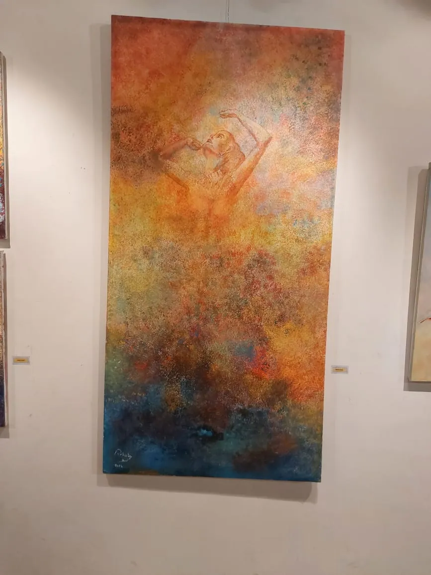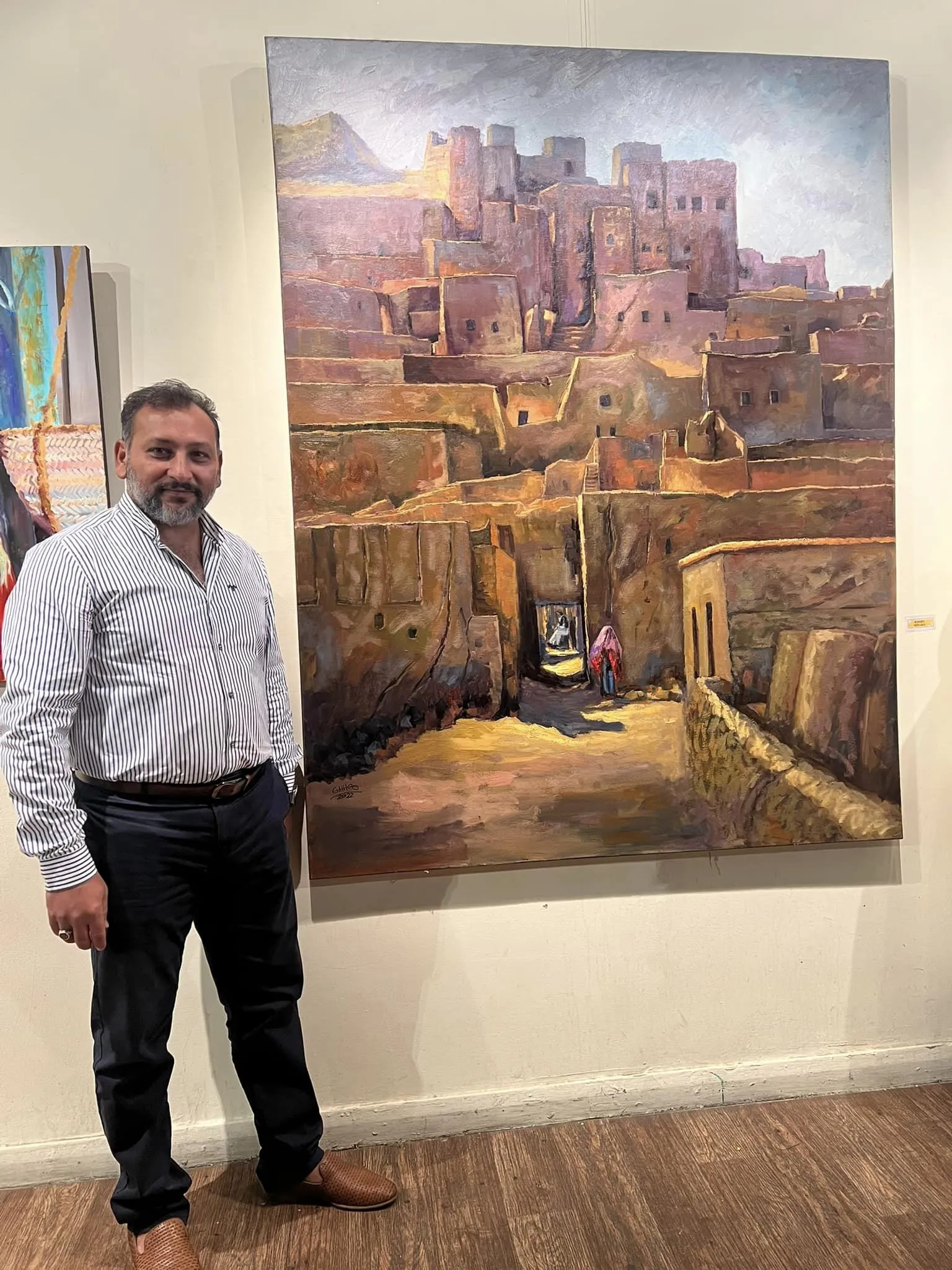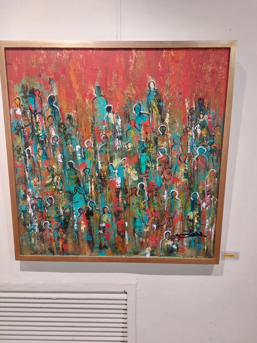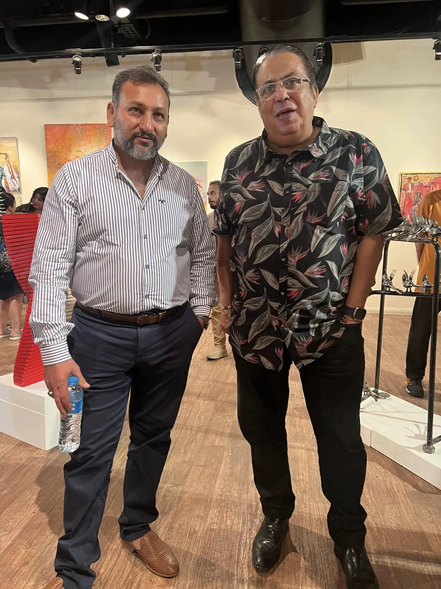 In an atmosphere full of friendliness and art, the head of the Fine Artists Syndicate, artist Tarek El-Komy, inaugurated the art exhibition (Beyond the Frame) at the Egyptian Opera House in the presence of the Deputy Ambassador of the Custodian of the Two Holy Mosques in Cairo, Abdul Rahman bin Salem Al-Dahas, and Manal Metwally, wife of the Egyptian Ambassador to Norway; and the head of the Environment Committee at the Engineers Syndicate, Dr. Naima Al-Qasir, Director of the World Health Organization in Egypt, and a group of public figures and symbols of art and society.