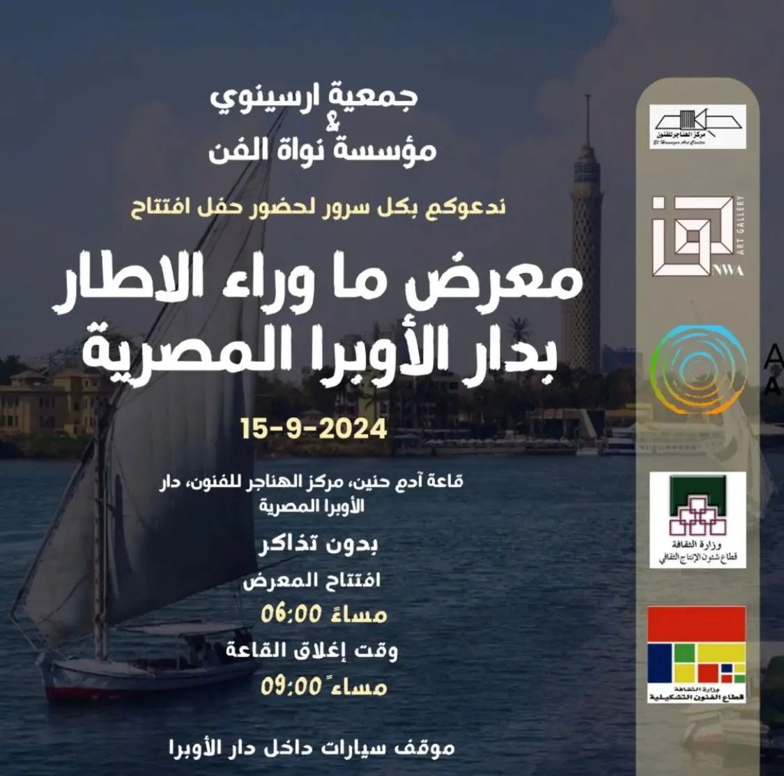 The activities of the second edition of the exhibition (Beyond the Frame) organized by the Arsinoe Association for Community Development in Egypt for Culture and Fine Arts were inaugurated. The exhibition activities will continue until September 20th at Adam Henein Hall at the Hangar Arts Center, with a number of accompanying artistic activities.
