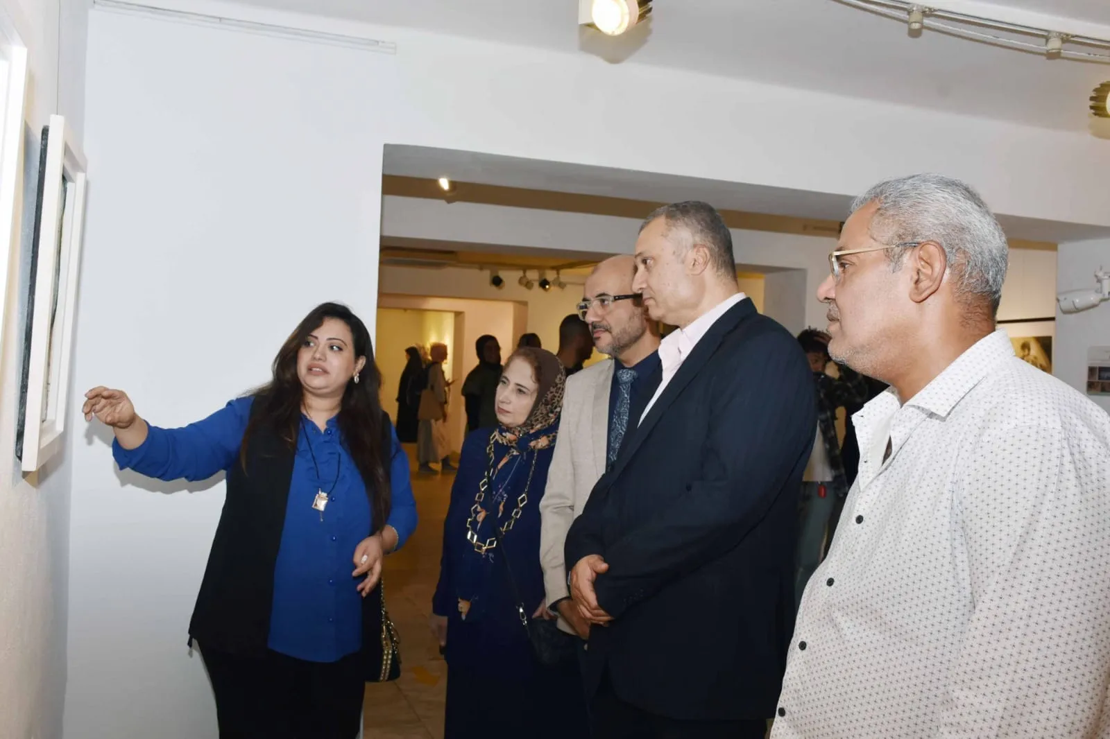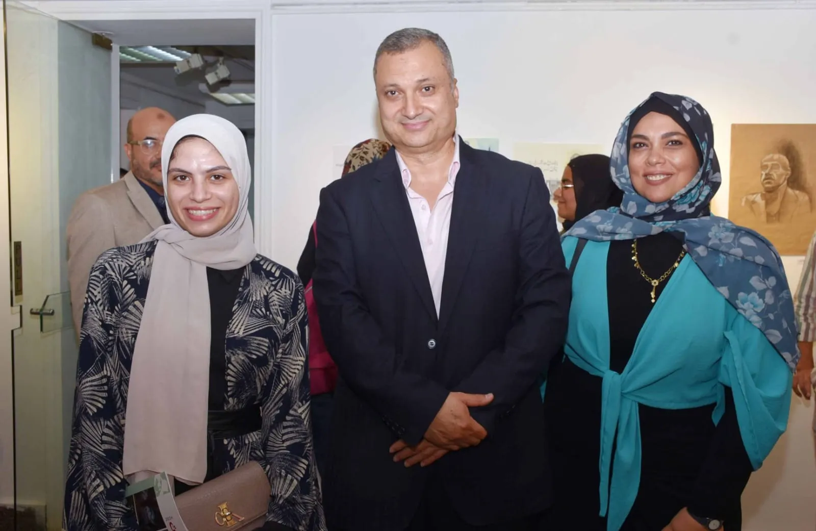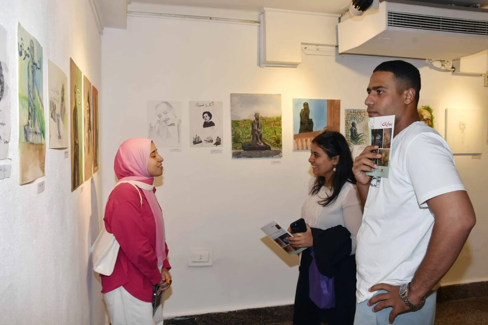 In light of the Fine Arts Sector's celebration of the anniversary of the Prince of Poets Ahmed Shawky, the group exhibition "Beginnings" was opened for female artists (Asmaa Nadi Tawfiq - Israa Mohamed - Suzan Adel Issa) and artist/ Hesham Ali Al-Sayed in the presence of Prof. Dr. Mohamed Hamdy Professor of Photography at the Faculty of Fine Arts - Helwan University and founder of the Drawing Egypt Group, which implemented a drawing and photography workshop after the opening of the exhibition, on Wednesday, October 16, 2024.