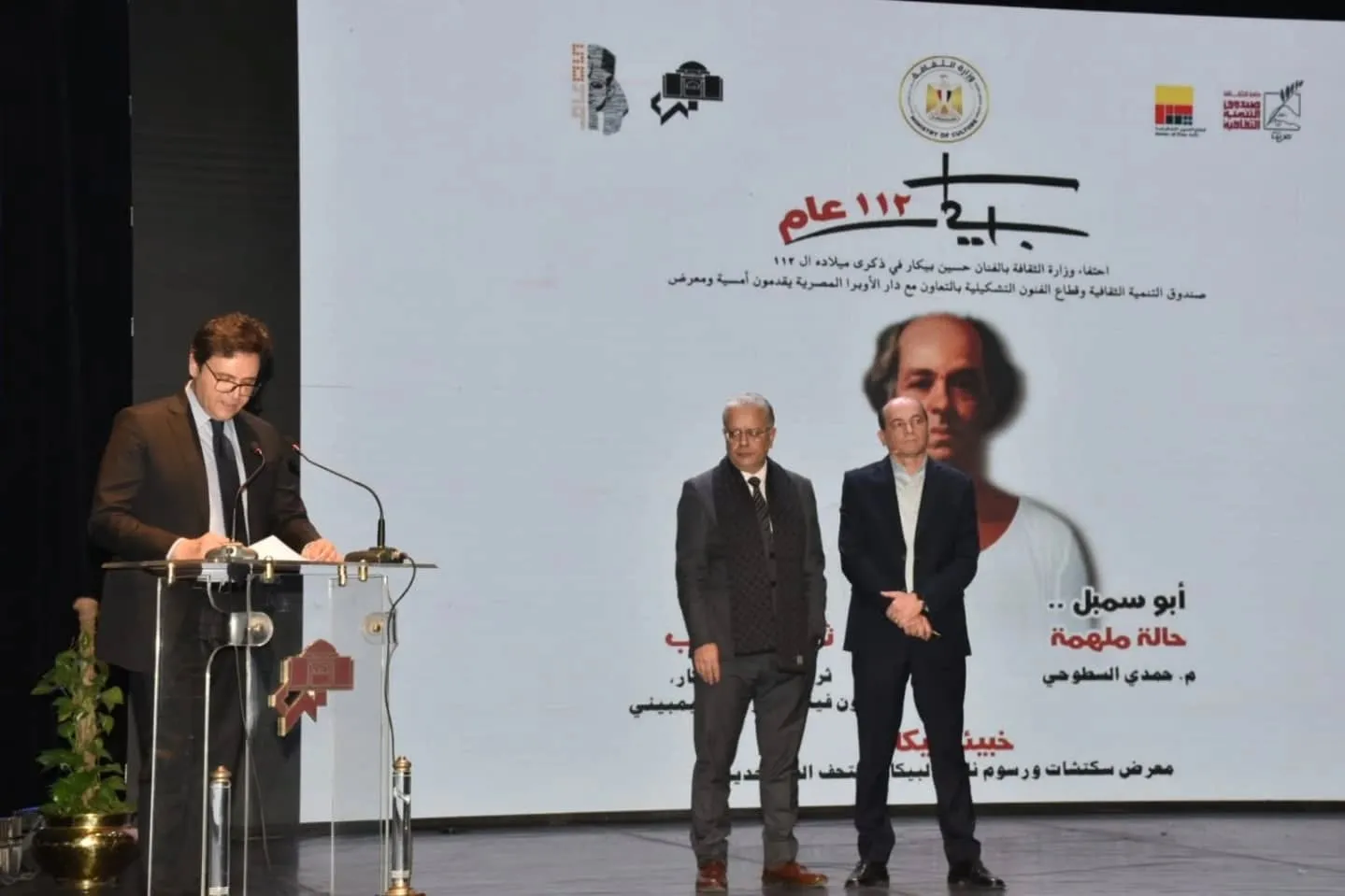 Following the opening, the Minister of Culture witnessed a major celebration at the Small Theater of the Egyptian Opera House, in cooperation between the Fine Arts Sector and the Cultural Development Fund. The celebration reviewed the inspiring role played by Hussein Bikar in documenting the epic rescue of the Abu Simbel temples, in addition to highlighting his immortal creations that influenced modern Egyptian art. In his speech, Dr. Ahmed Fouad Hano stressed that the reopening of the Museum of Modern Art with the “Bikar’s Cache” exhibition represents a tribute to Egyptian creativity and its symbols, and said: “Today we celebrate an artist who made his works bridges between the past and the future. Bikar was not just a visual artist, but a poet of color, a philosopher of lines, and an engineer of conscience. His paintings were honest testimonies to the beauty of daily life, especially in Nubia, which he loved.” During the celebration, Dr. Ahmed Fouad Hanno, Minister of Culture, stressed that the reopening of the Museum of Modern Art today with the "Bikkar's Cache" exhibition is a tribute to the spirit of Egyptian creativity and an embodiment of our commitment to protecting cultural heritage. This event represents an open window for new generations to learn from the pioneers of art, who made their works bridges between the past and the future. He pointed out that the documentary film "The Eighth Wonder", which documented the epic reconstruction of the temples of Ramses II in Abu Simbel during their transfer in the sixties of the last century. In this work, Bikar transported us through his colors and lines to the heart of this historical moment, where he encapsulated in his paintings that enchanting relationship between man and his greatest achievements. We are thus in the presence of Hussein Bikar's legacy, celebrating the essence of art itself and the human spirit that he illuminated with his creativity.