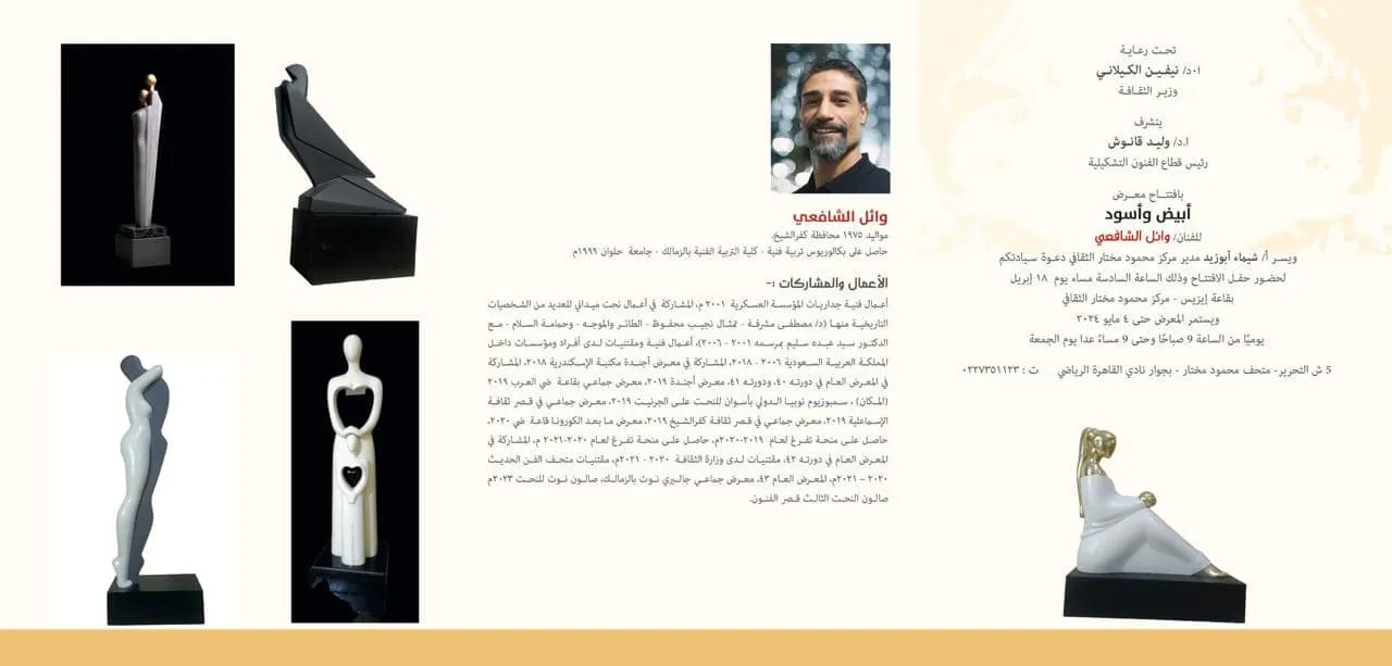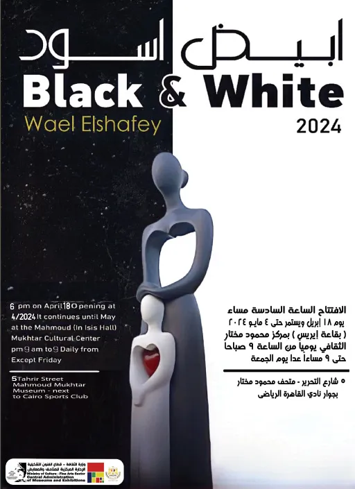 black and white At Mahmoud Mukhtar Cultural Center Under the patronage of Dr. Nevin Al-Kilani, Minister of Culture, Dr. Walid Qanoush, Head of the Fine Arts Sector, kindly opened the artist/Wael Al-Shafi’i exhibition under the title (Black and White) on Thursday, April 18, 2024 at 6 pm in the Isis Hall at the Mahmoud Mukhtar Cultural Center. The exhibition runs until May 4, 2024. Address: 5 Tahrir Street, next to Cairo Sports Club. Appointments are daily from 9 am to 9 pm, except Friday. #Fine_Arts_Sector Mahmoud Mokhtar Cultural Center Waiting to honor you