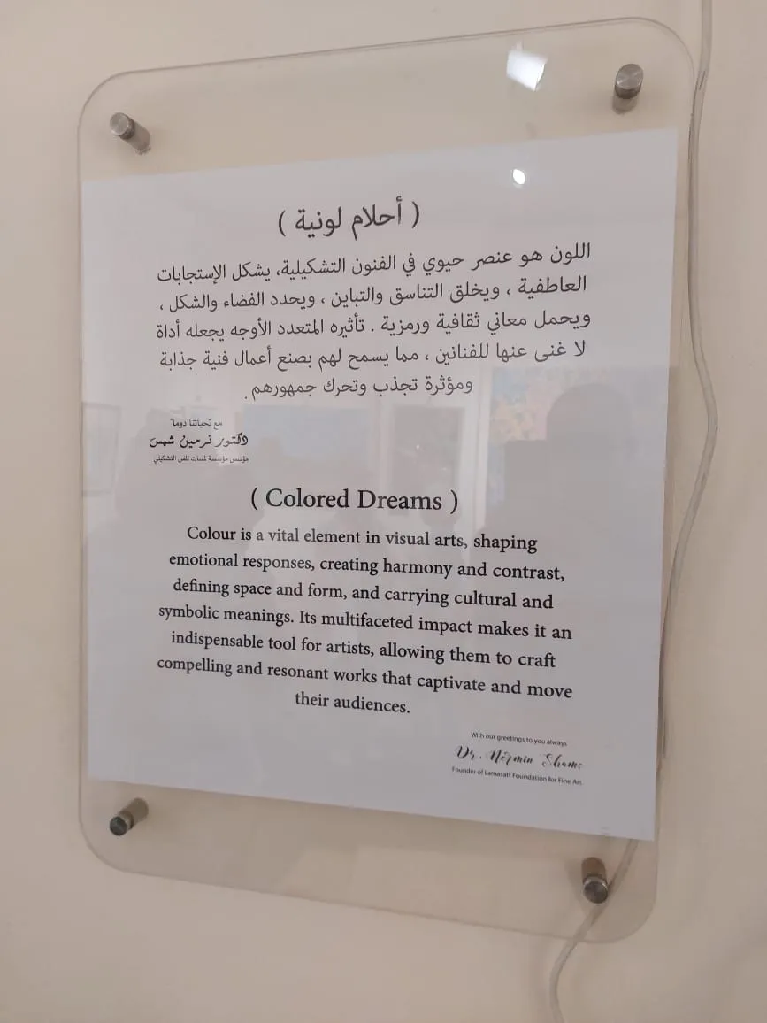 We are pleased and honored to announce that Lamasatt Art Gallery will be organizing an exhibition titled "أحلام لونية" on Wednesday , August 7, 2024, from 6:00 PM to 8:00 PM at Lamasatt Gallery's Fine Art Halls in Dokki.