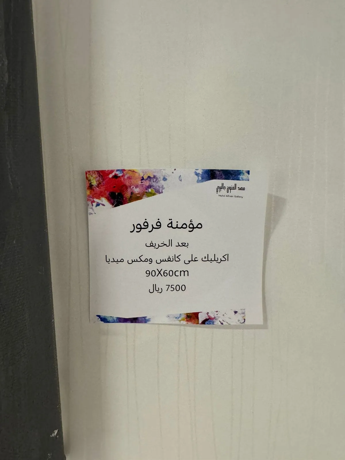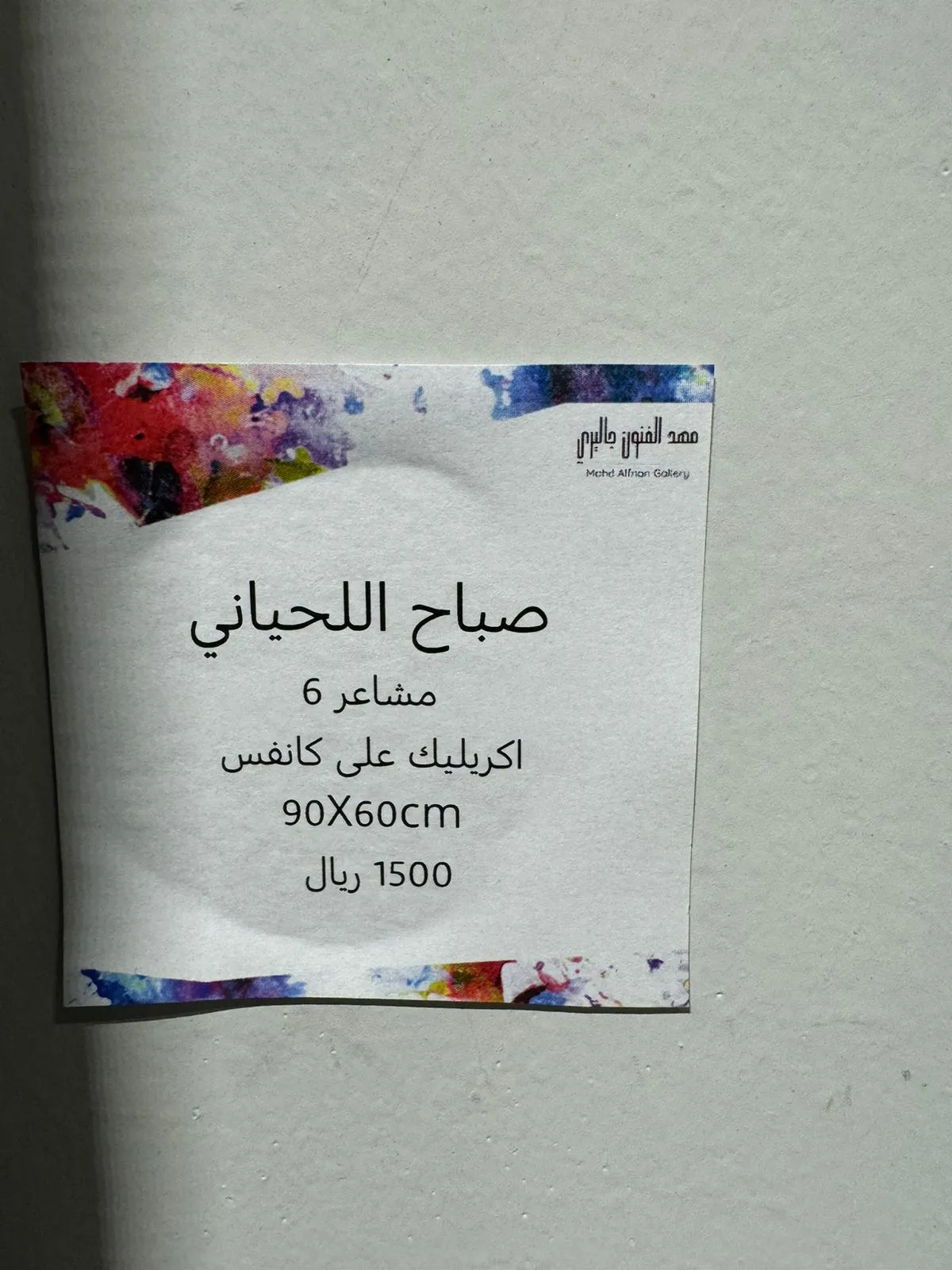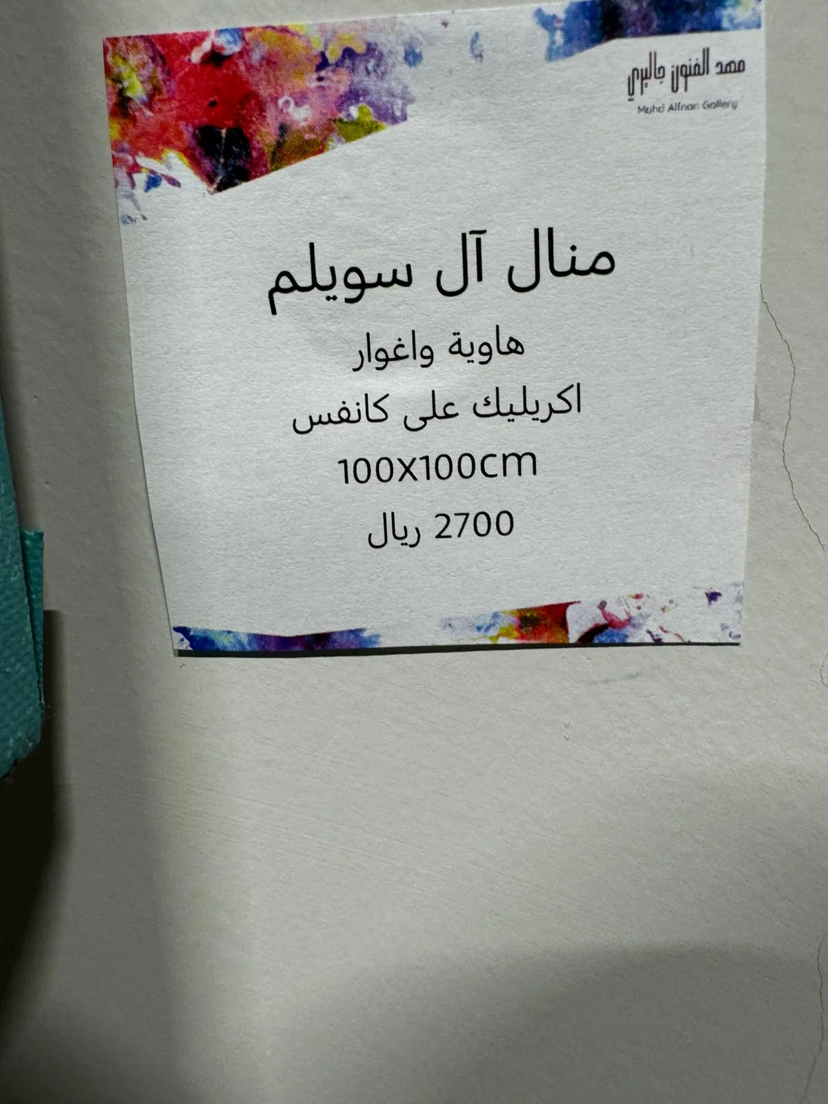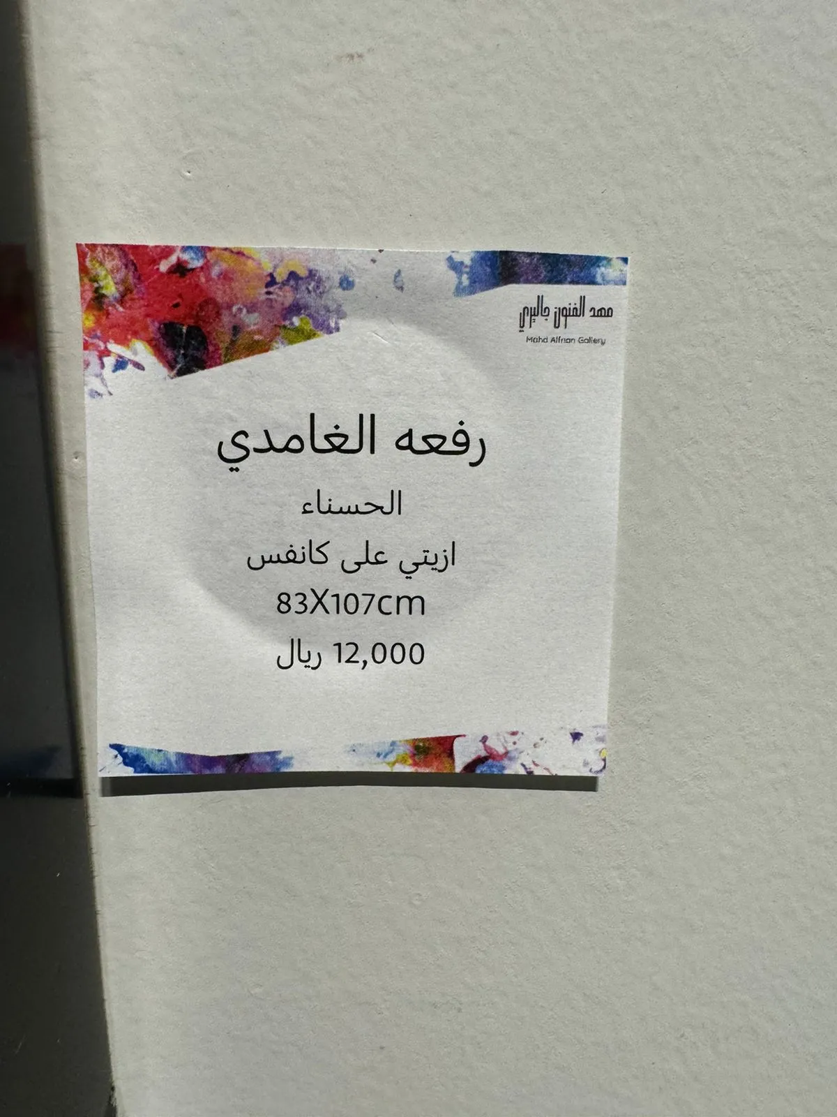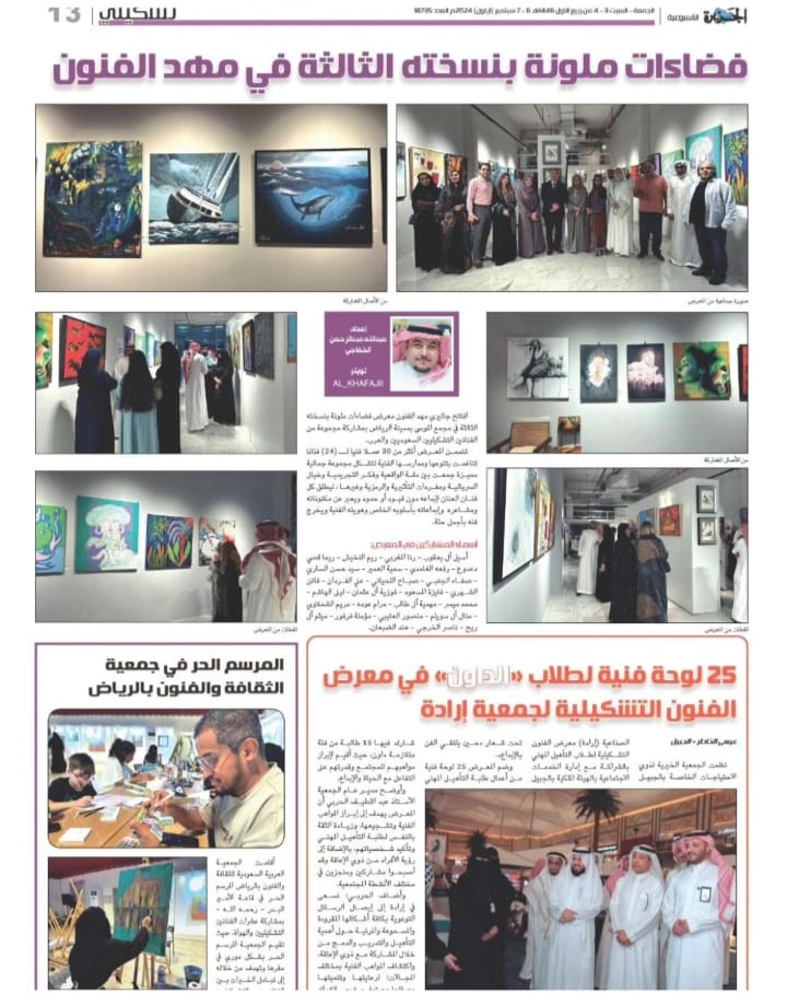 We are honored and pleased to have you attend the opening of the group exhibition (Colorful Spaces 3) Mahd Alfnon Gallery - Riyadh https://maps.app.goo.gl/VnkjwPft5x2ywfsr7?g_st=ic -