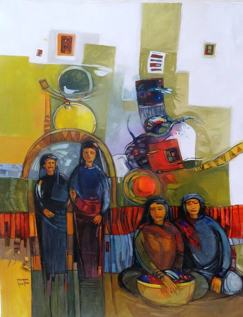 Human topics: Al-Dahham's paintings address humanitarian and social topics, as he expresses feelings of love and belonging to the environment and society. The influence of humanitarian issues and emotional reactions appears in his works, which makes them speak to the viewer on a deep level.