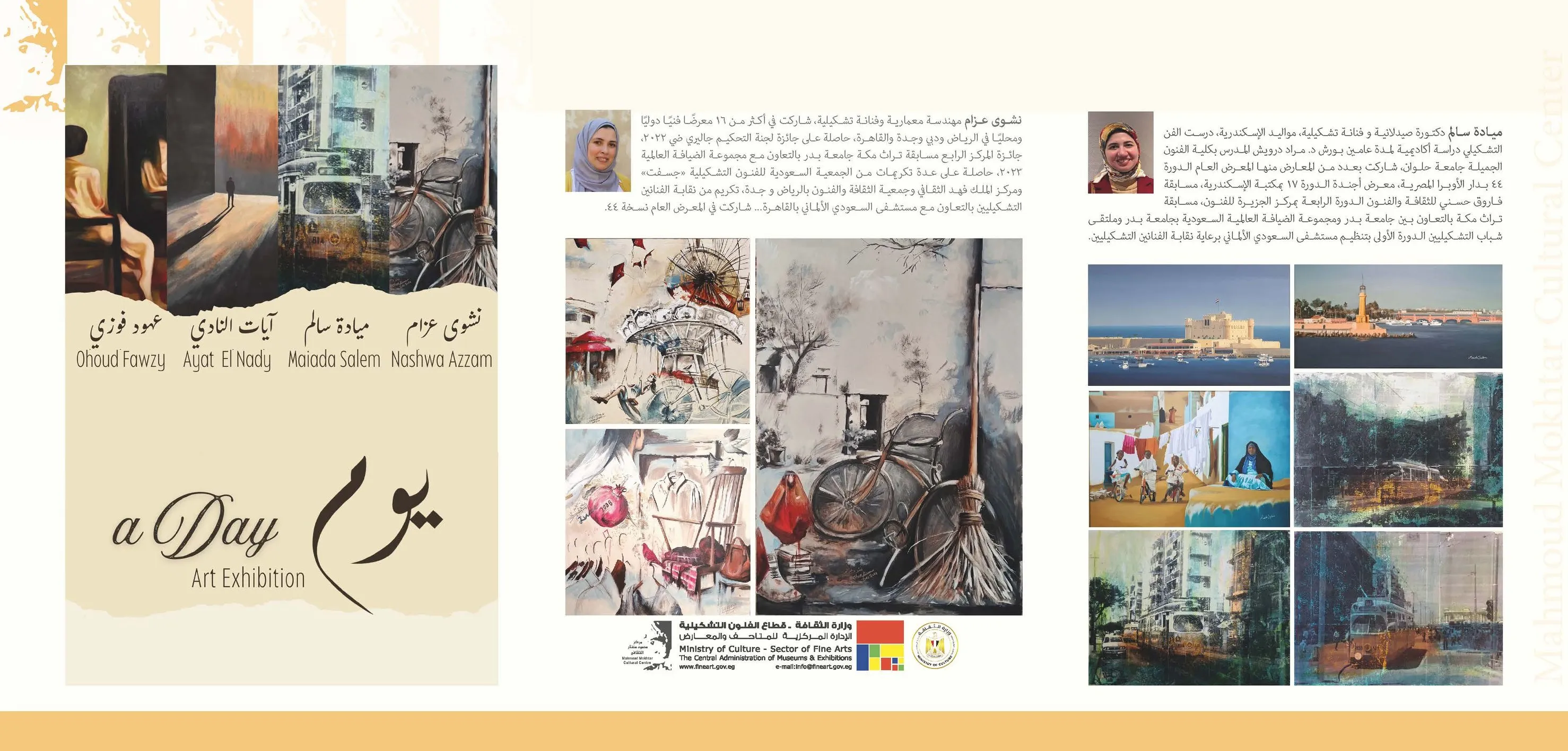 The group exhibition "Day" for female artists (Ayat Elnady - Ahoud Fawzy - Mayada Salem - Nashwa Azzam) was opened at the Isis Hall at the Mahmoud Mokhtar Cultural Center on Thursday, February 13, 2025. The exhibition will continue until February 23. We are pleased to have you visit. #Visual_Arts_Sector