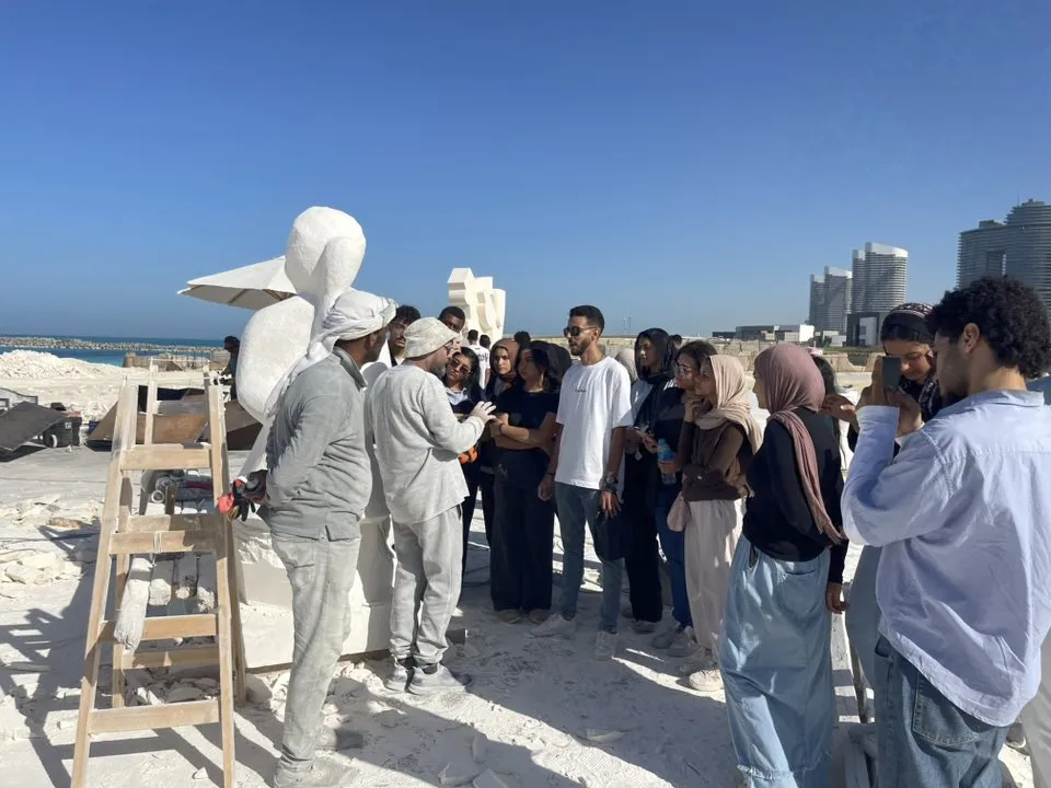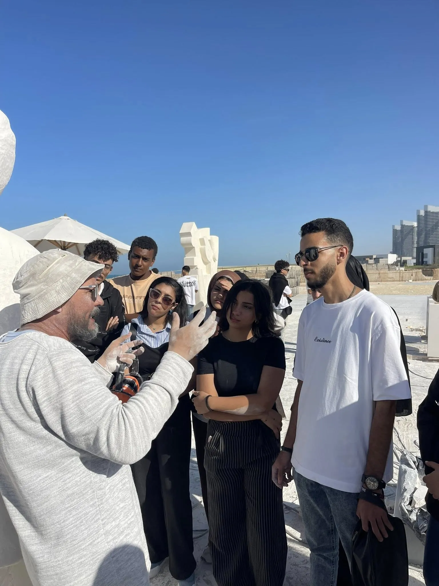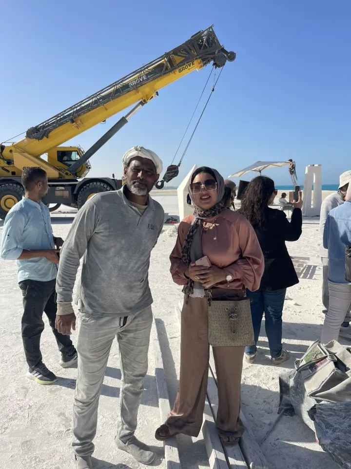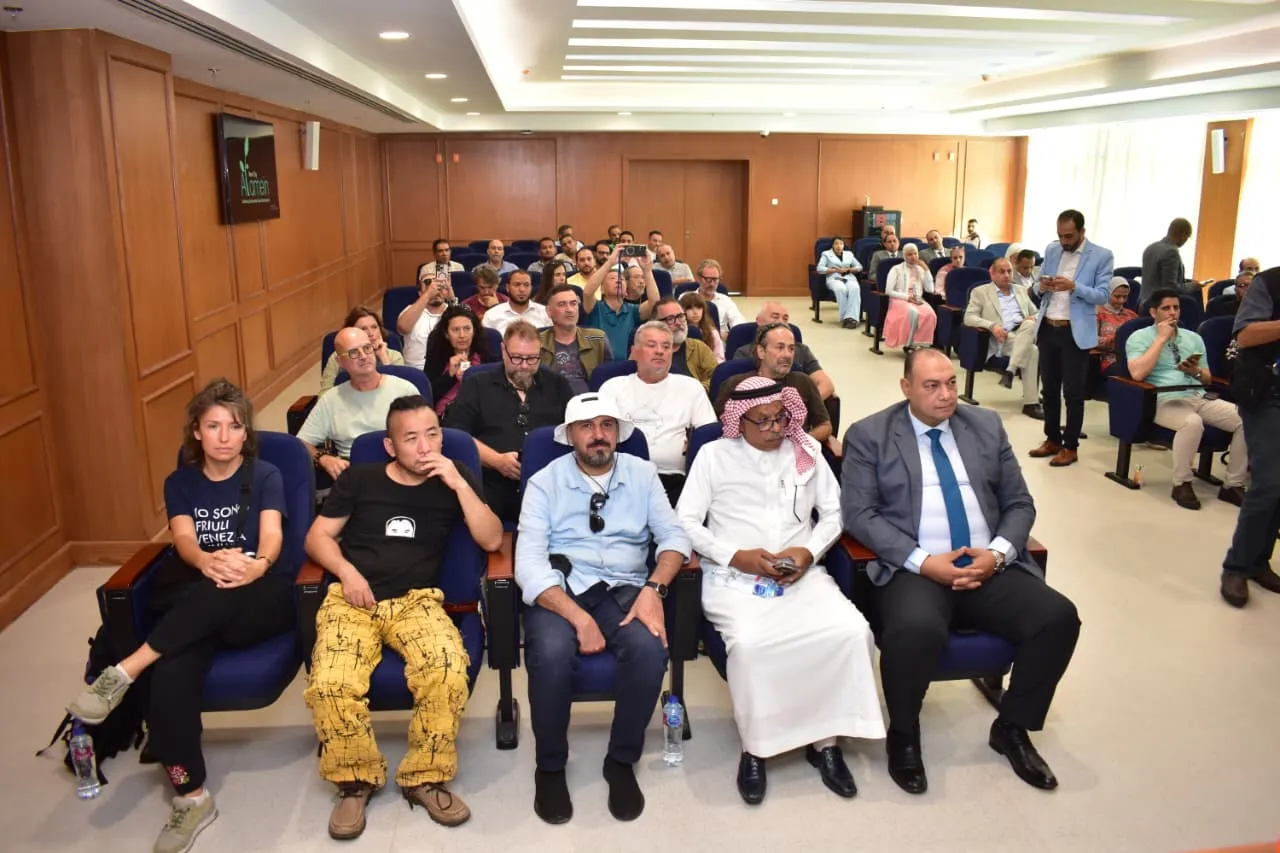 We are delighted to be present in New Alamein City. On this occasion, we would like to thank the New Alamein City Authority, the Ministry of Housing, the Ministry of Antiquities and Tourism, and the business investors, most notably Dr. Mustafa Hedaya, owner of the hotel hosting the event, Marina Resort El Alamein. We also congratulate the Ostraka Foundation for Arts and Development, and thank artist Mohamed Farouk Hemeida for his tireless work in the field of art and beauty, and his distinction in attracting artists from around the world. We also thank Counselor Sameh Sultan, the foreign delegation's companion and field visit coordinator with the security and relevant authorities. We, the artists, hope to present distinguished artistic works to El Alamein City, to be a participation worthy of this great tourist edifice. Finally, we extend our sincere thanks to Engineer Mohamed Khalaf Allah, Head of the New Alamein Development Authority.