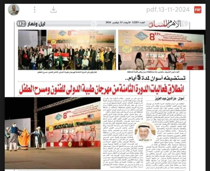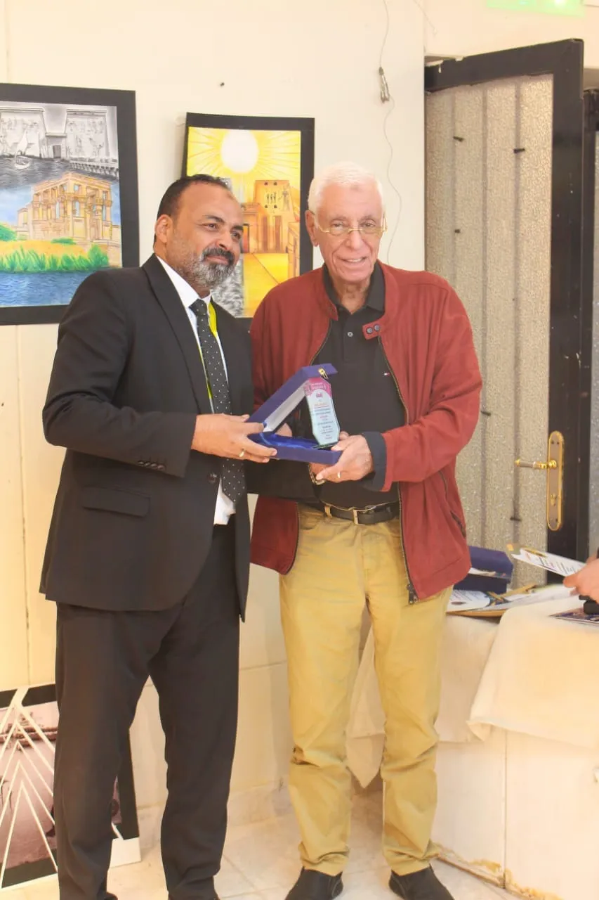 Taiba International Festival for Spontaneous Arts Titled "Egyptian Story" The exhibition opens " Prof. Dr. Youssef Mahmoud Ibrahim Head of the Sculpture Department and former Dean of the Faculty of Fine Arts, Qasr University Artist Mustafa El-Sokary Prof. Dr. Mervat El-Suwaifi Prof. Dr. Hossam Mowafy Dr. Hana Makram Zaki Festival President "Dr. Hana Makram Hana Foundation for Development and Festival Tourism General Authority Culture ASWAN 10-15
