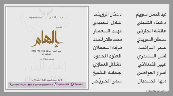 AyqaArt Twitter R.a.gallerysa@gmail.com Email iqa3art1177 Instagram 0534537226 Tel