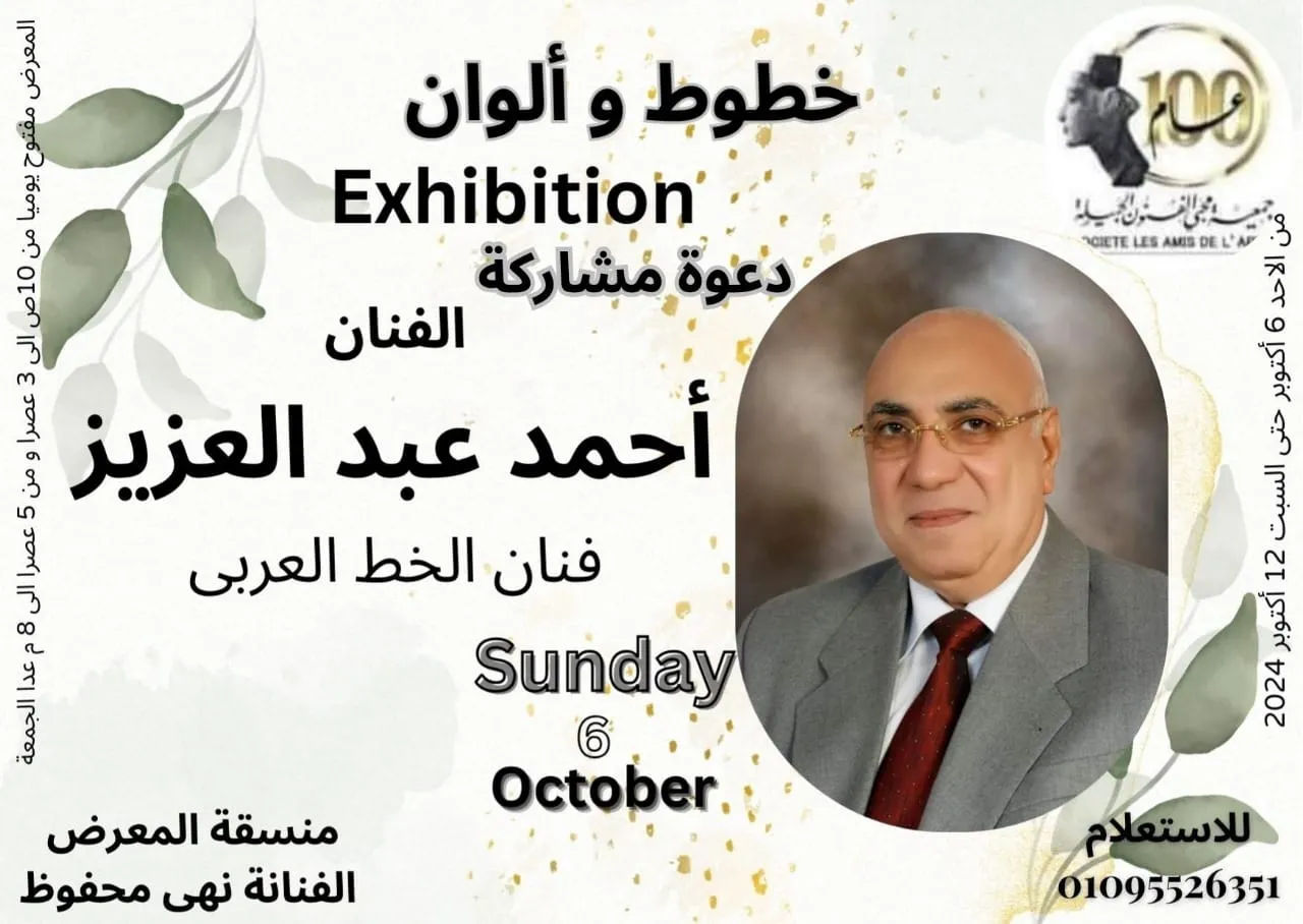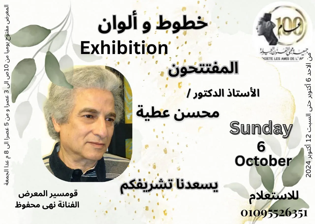 Opening of the Lines and Colors Exhibition at the Fine Arts Lovers Association At the Fine Arts Lovers Association in Garden City, the Tafanin Group Exhibition was opened under the title "Lines and Colors" which comes under the auspices of the Cultural Committee of the Association. The exhibition was opened by: Professor Dr. Artist Mohsen Attia Professor of Criticism and Artistic Appreciation at the Faculty of Art Education, Helwan University. Professor Dr. Artist Mohamed Ishaq Professor of Sculpture and former Dean of the Faculty of Education Helwan University. Professor Dr. Artist Maysoun Qutb Dean of the Faculty of Applied Arts Helwan University. Professor Dr. Artist Fayrouz Samir Abdel Baqi Professor of Photography at the Faculty of Fine Arts, Helwan University. The great poet and media figure Dr. Gamal El Shaer. And the great actor and artist Tarek El Desouky. This was attended by a group of media professionals and artists, headed by: The great director Abdel Hakim El-Tunisi, the great director Mimi Mustafa, Professor Narmin Ahmed Hussein, Director General of Public Relations at the National Center for Children's Culture, and the international director Mr. Qandil.