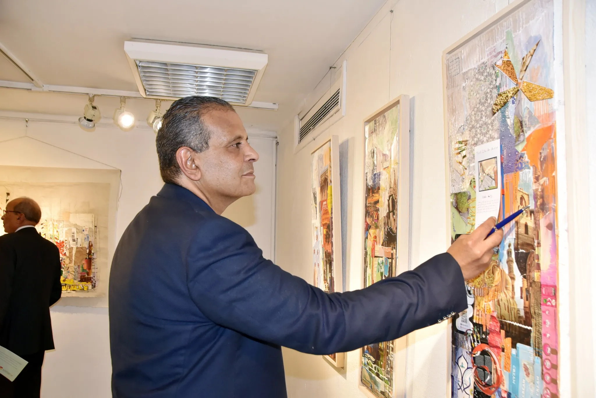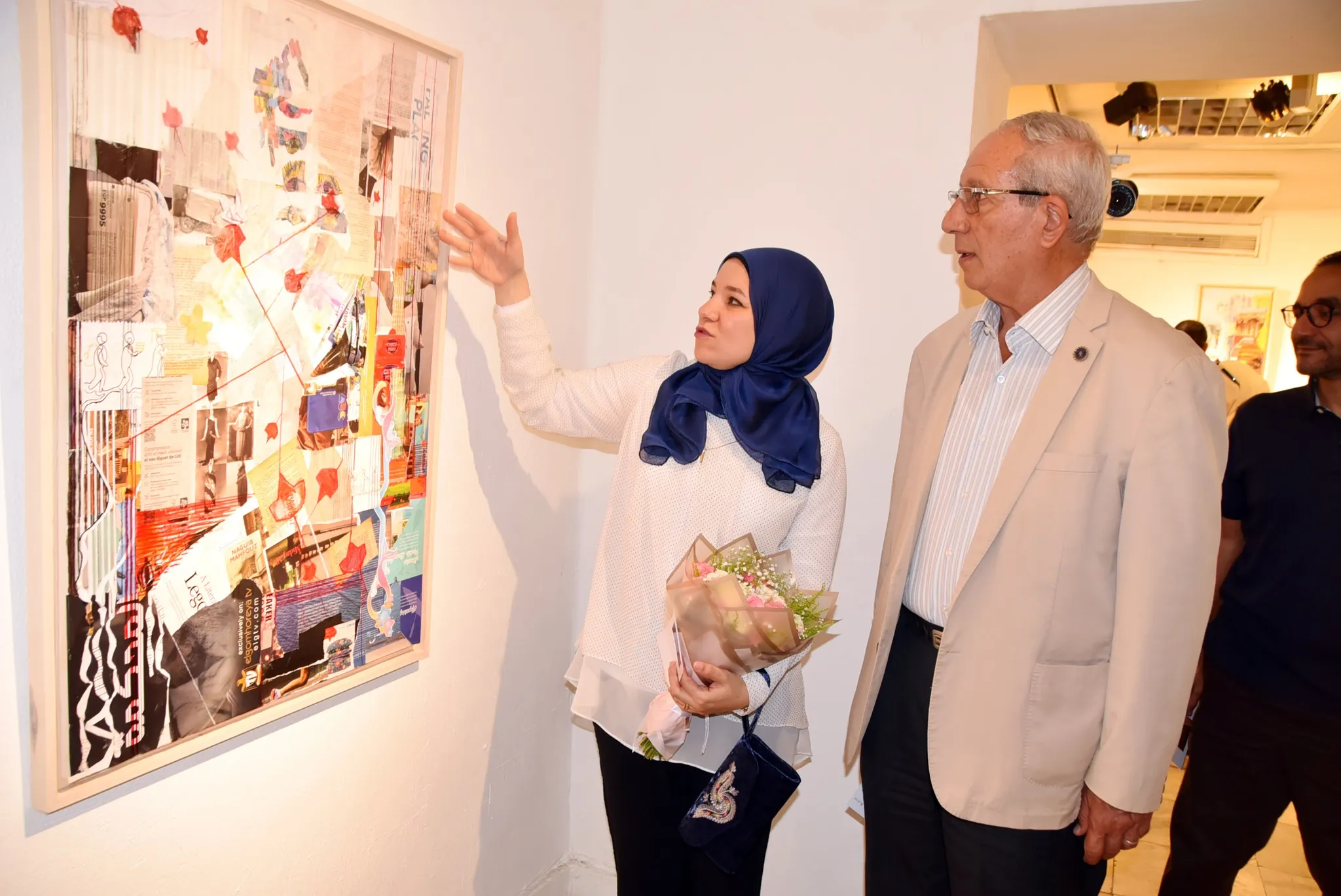 Prof. Dr. Eng. Wael El Degwy, former Minister of Higher Education and Scientific Research, accompanied by Prof. Dr. Hammad Abdullah Hammad, Professor of Spinning and Weaving and former Dean of the Faculty of Applied Arts, Helwan University, inaugurated the exhibition of artist Mahitab El Shafei, entitled "Links", on Wednesday, June 25, 2025, at the Karma Bin Hani Cultural Center in the Ahmed Shawqi Museum @Ahmed Shawqi Museum. The exhibition will continue until July 5, 2025. We are always happy to have you. Address: 6 Ahmed Shawqi Street, behind the Nile Tower, in front of the Giza Zoo. #Visual_Arts_Sector