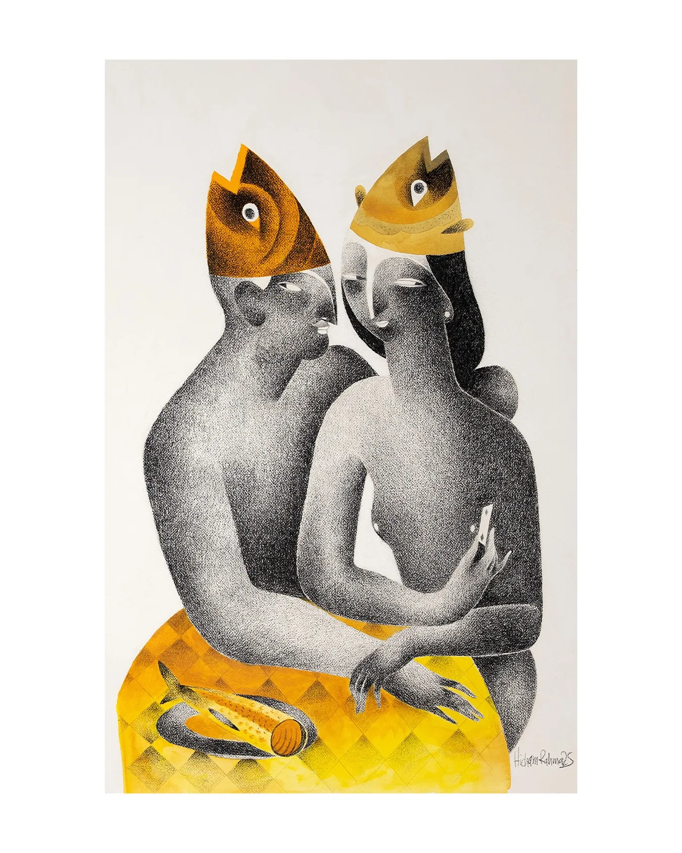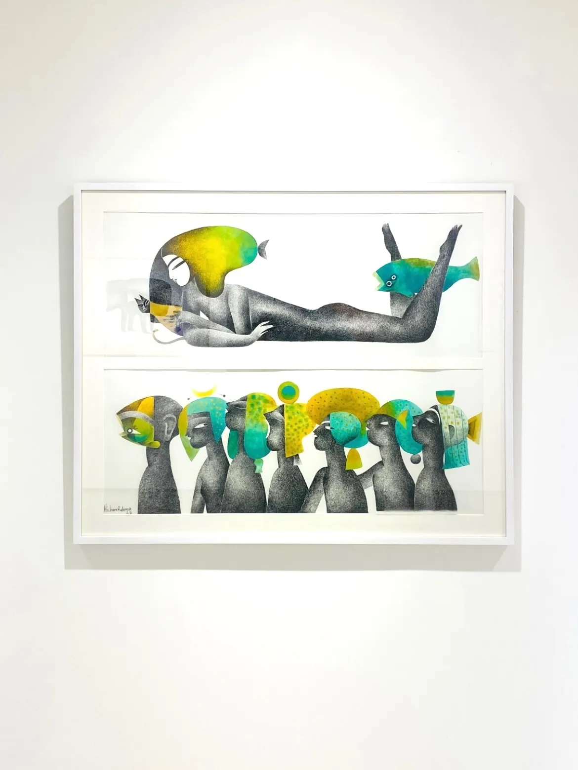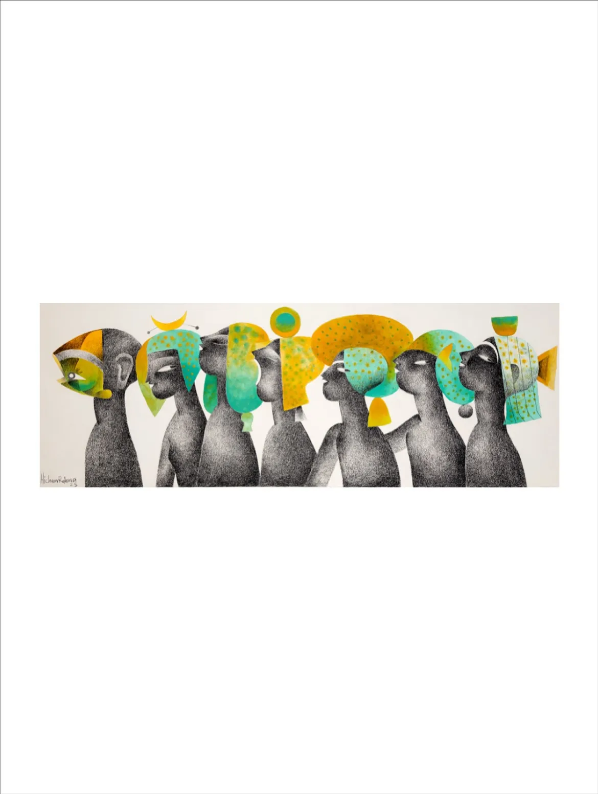 In "Morning Hats, Evening Masks," the artist revives the dialogue between day and night—between revelation and concealment. By combining acrylic, charcoal, and cotton paper, Rahma celebrates the coexistence of clarity and mystery, where each brushstroke becomes an encounter between the elements—air, water, and light.