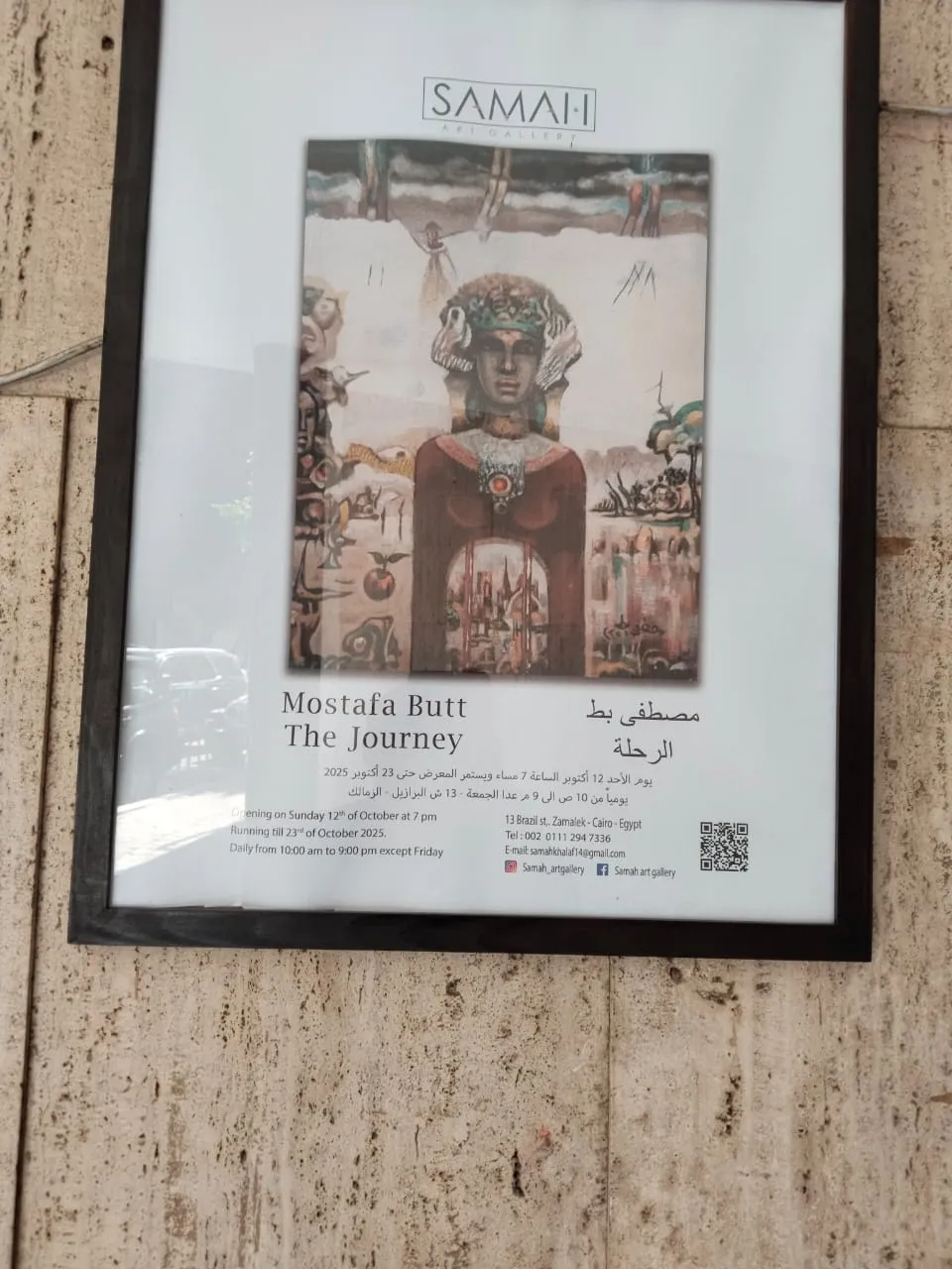 Opening on Sunday 12th of October at 7 pmRunning till 23rd of October 2025.Daily from 10:00 am to 9:00 pm except Friday13 Brazil st,, Zamalek-Cairo-EgyptTel: 002 0111 294 7336E-mail: samahkhalaf14@gmail.comSamah_artgallery