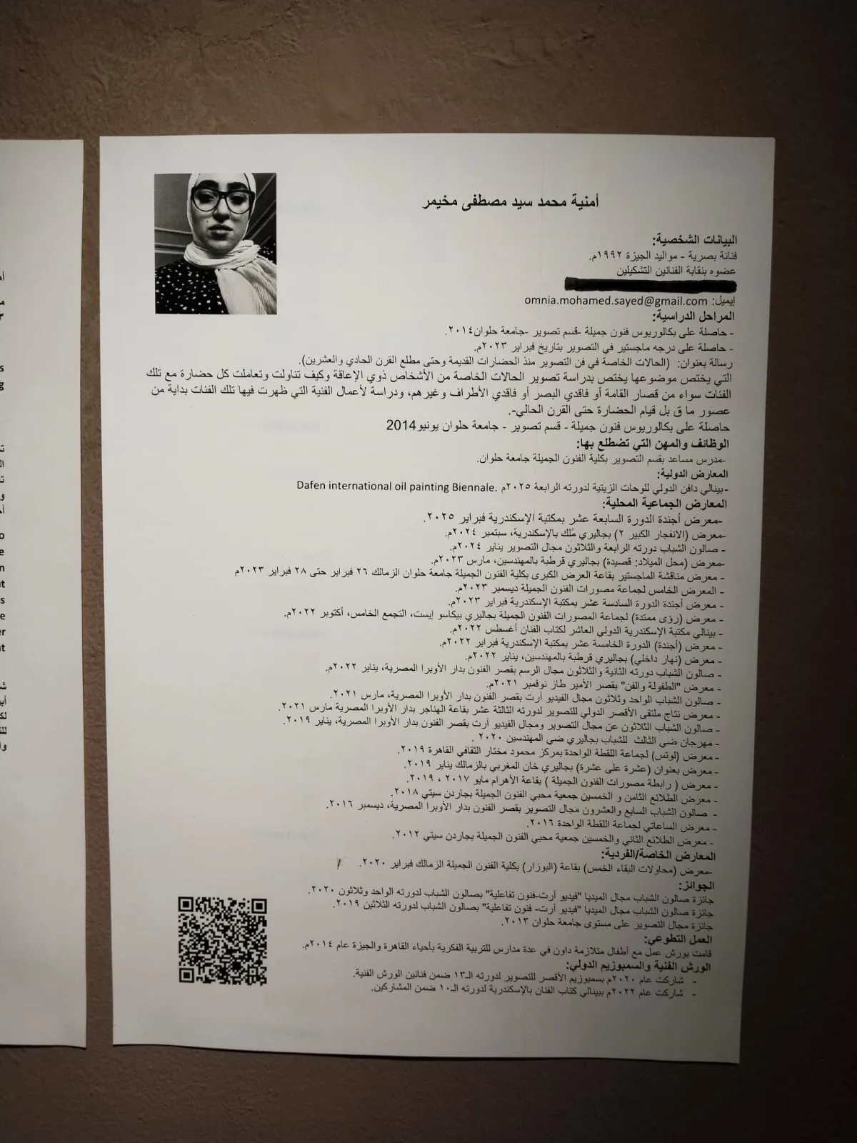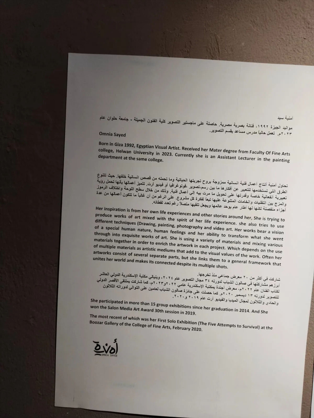 In the presence of Dr. Walid Qanoush, Head of the Fine Arts Sector, the exhibition of artist Omnia Sayed, titled "Not Myself," was inaugurated on Tuesday, April 8, 2025, at El Bab Gallery. The exhibition will continue until April 19. We are always happy to have you. El Bab Gallery, Museum of Modern Egyptian Art, Cairo Opera House. Opening hours are from 9 a.m. to 9 p.m. daily, except Fridays. #Fine_Arts_Sector
