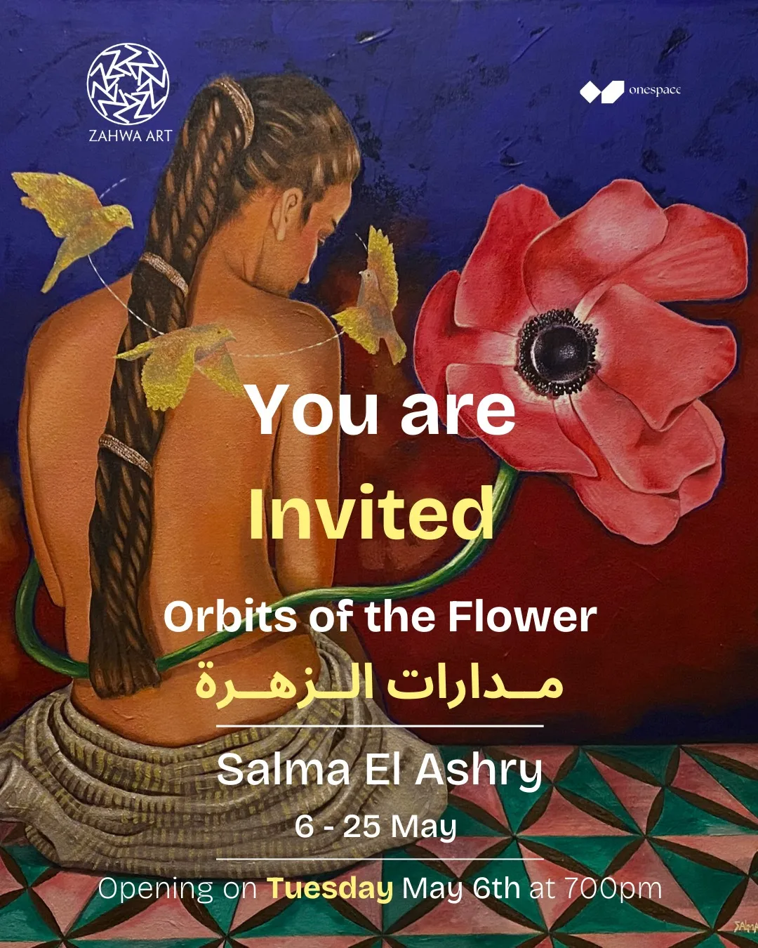 We are pleased to invite you to the opening of Salma El Ashry's solo exhibition "Orbits of the Flower"! Embark on a meditative visual journey where ancient Egyptian symbols—particularly the lotus flower—are reinterpreted through a deeply personal, contemporary lens. Exploring themes of birth, balance, and inner transformation, Salma El Ashry guides us on a poetic journey of color, memory, and meaning. Opening Night: Tuesday, May 6, 7:00 PM Zahwa Art Gallery – 8 Kasr El Nil Street, 5th Floor, Downtown Cairo