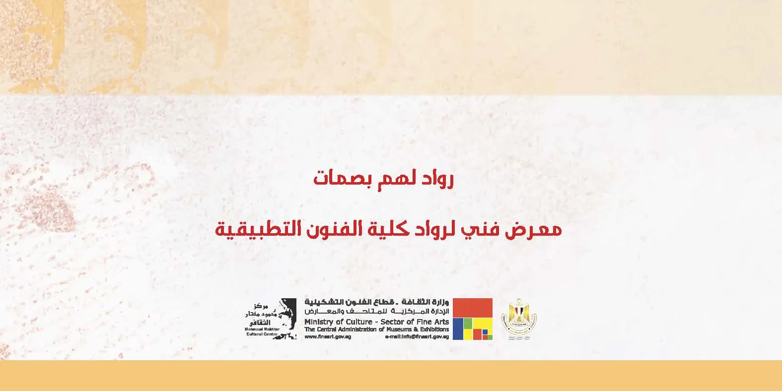 "Pioneers with Fingerprints" At Mahmoud Mokhtar Cultural Center Under the patronage of Prof. Dr. Ahmed Fouad Hano, Minister of Culture, Prof. Dr. Walid Qanoush, Head of the Fine Arts Sector, will open the group exhibition "Pioneers with Fingerprints", an art exhibition for pioneers of the Faculty of Applied Arts, at 7 pm on Thursday, August 29, 2024, in the (Nahdet Misr - Isis) halls at Mahmoud Mokhtar Cultural Center. The exhibition will continue until September 9, 2024. Time: Daily from 9 am to 9 pm, except Friday. Address: 5 Tahrir Street, next to Cairo Sports Club. T: 0227351123 #Fine_Arts_Sector Mahmoud Mokhtar Cultural Center