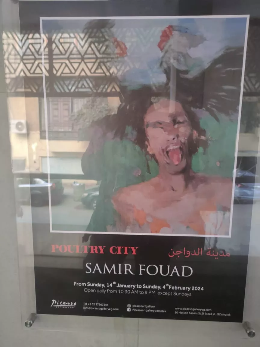 cordially invites you to attend the opening ceremony of the exhibition Poultry City SAMIR FOUAD Sun.14th Jan. From 7pm Runing till 4th of Feb.2024 Daily from 11am to 9pm except Sundays Picasso ART GALLERY 02 2736 7544 +2 01024850021 30 Hassan Assem st. El Zamalek, Cairo