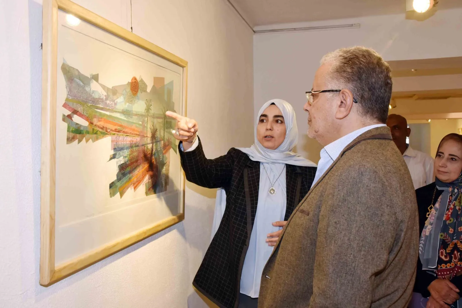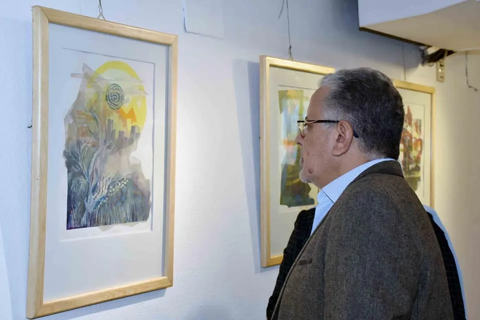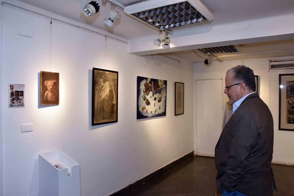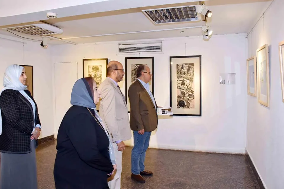 Karma Bin Hani Cultural Center at Ahmed Shawqi Museum witnessed the opening of the "Wander and See" exhibition by artist Heba Fawzy and the "Shadows" exhibition by artists (Ahmed Farid - Sarah Mohamed - Mahmoud Ragab - Heba Ibrahim) in the presence of a group of artists and were honored by the visit of Prof. Dr. Walid Qanush, Head of the Fine Arts Sector, who praised the artists and the artworks on display.