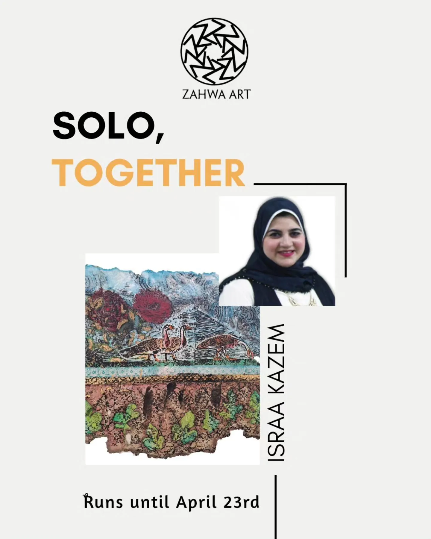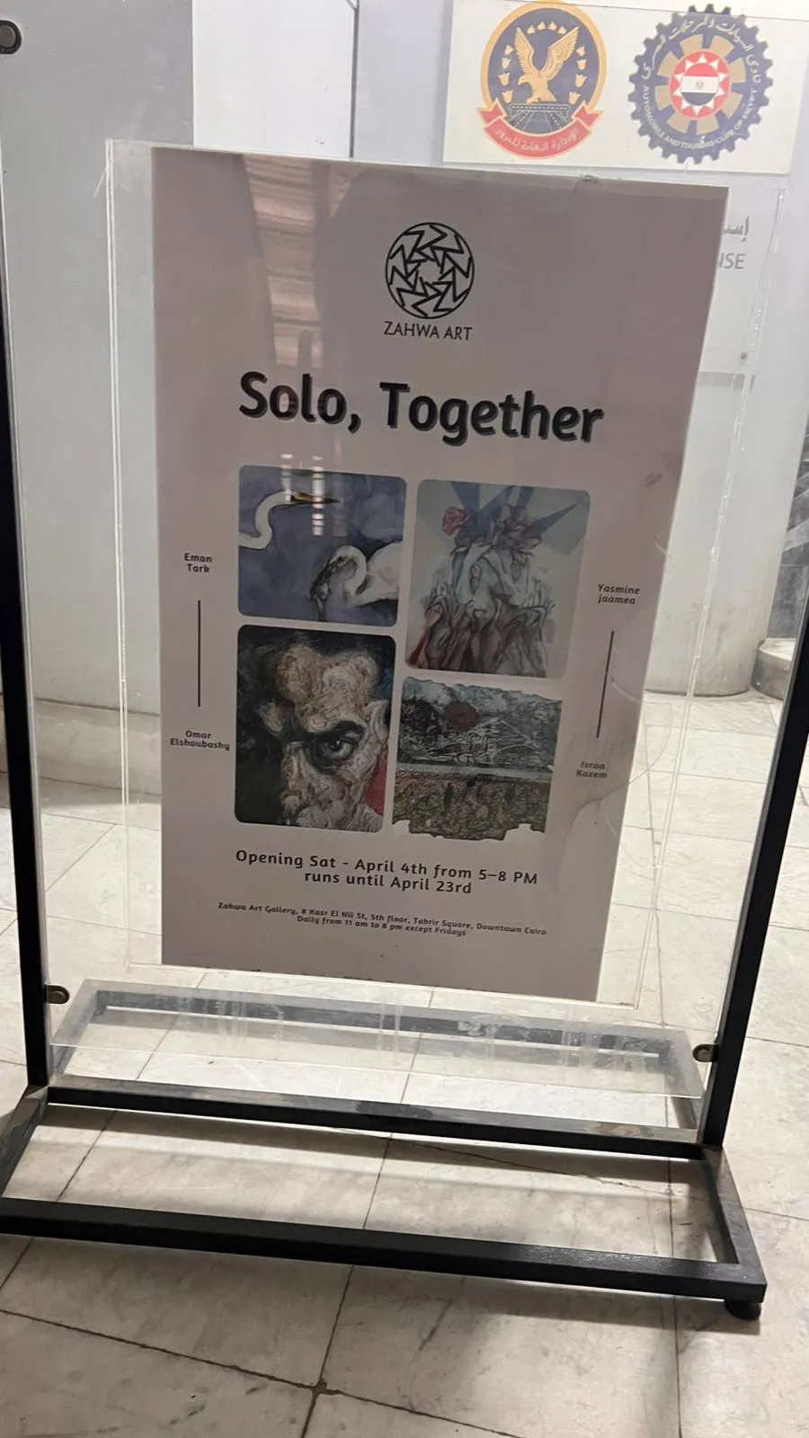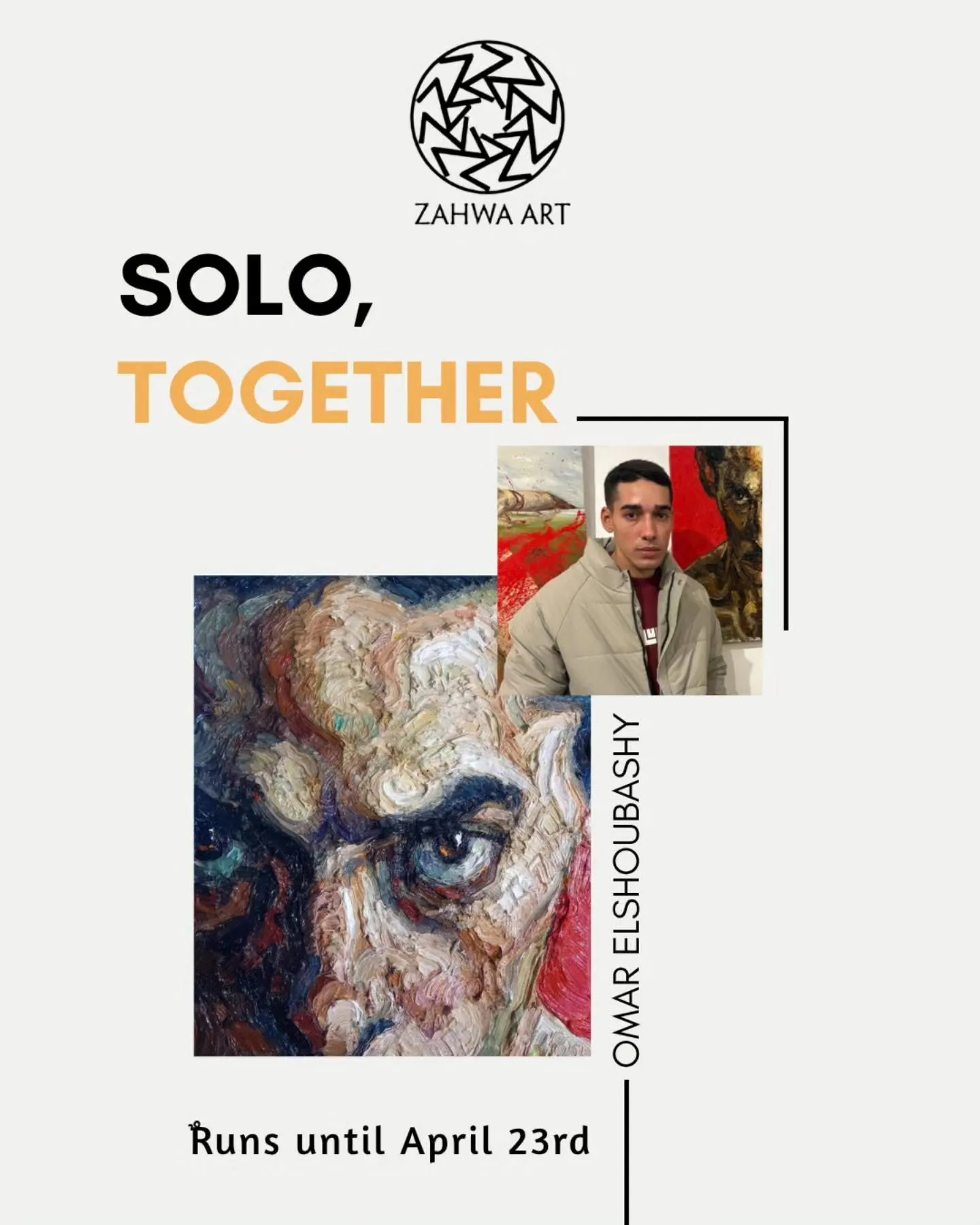 We are thrilled to announce our upcoming Exhibition, “Solo Together”! The exhibition brings four young contemporary artists into a shared space, while preserving the independence of their individual practices. Each artist presents a distinct body of work shaped by personal processes, materials, and concerns. Working across different surfaces and mediums, the artworks exist side by side, creating a quiet dialogue through proximity rather than collaboration. The exhibition embraces difference over unity, allowing contrasts, rhythms, and subtle connections to unfold. Participating artists: Eman Tark - Israa Kazem - Omar Elshoubashy - Yasmine Jaamea. We invite you to join us for the opening: Saturday, April 4th 5:00 – 8:00 PM Zahwa Art Gallery – 8 Kasr El Nil St, 5th Floor, Downtown Cairo