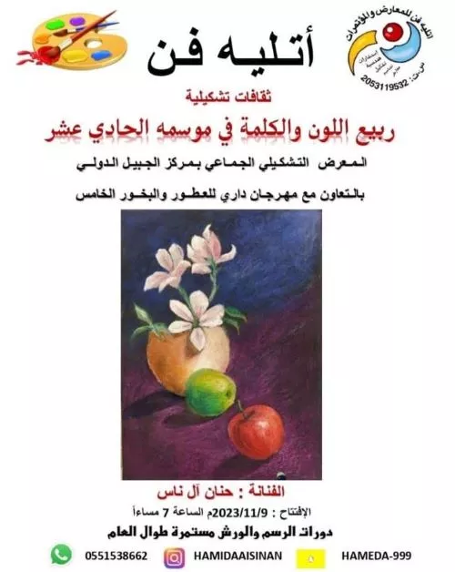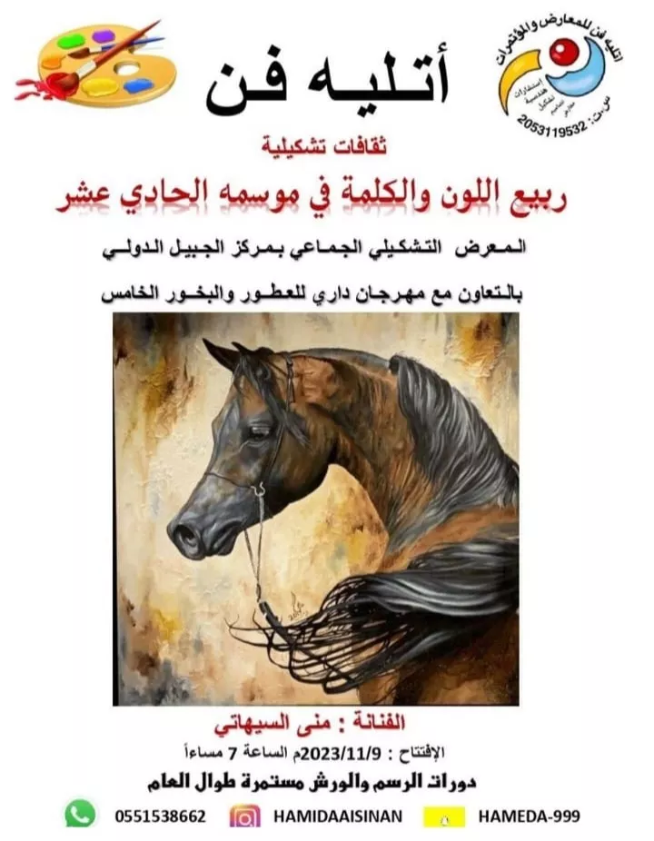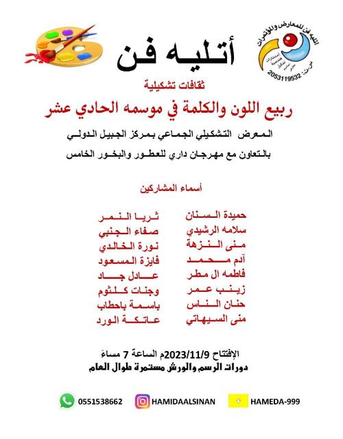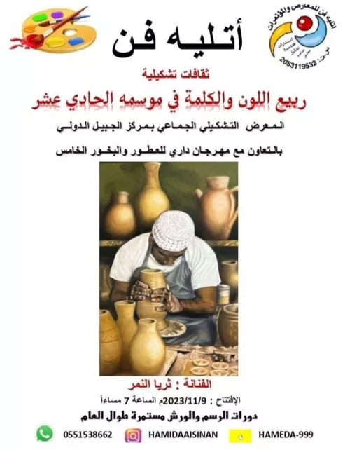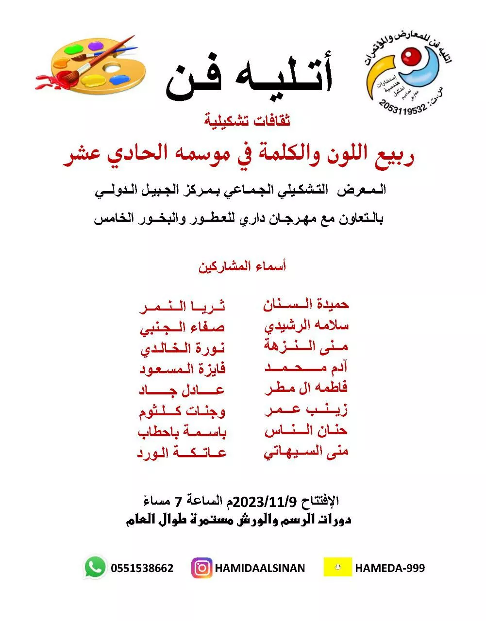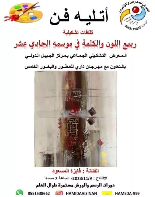 With special honor from the great calligrapher Ibrahim Al-Khowaiter, the Spring of Color and Word exhibition was opened for the Dari Incense and Perfumes Festival in Jubail 11/9/2022