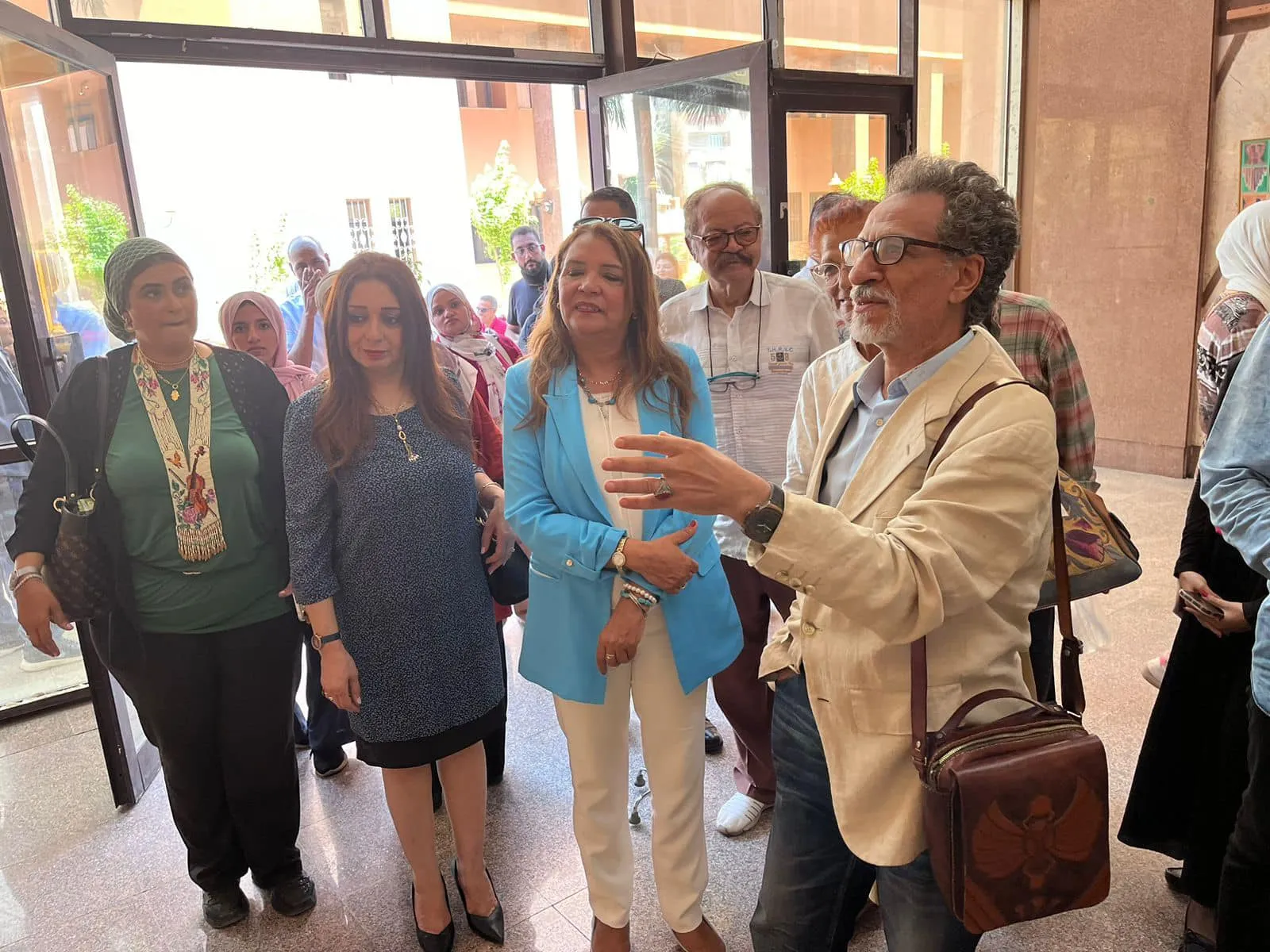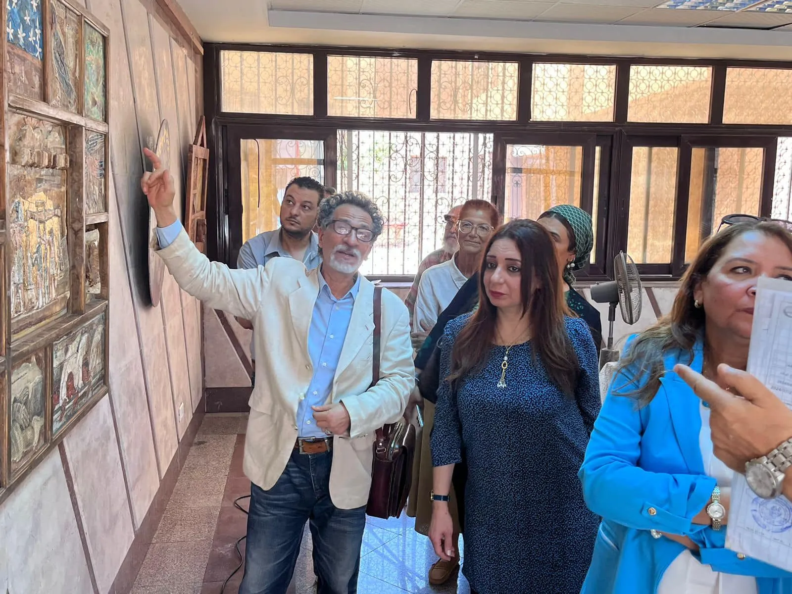 The Higher Institute of Art Criticism is honored by the presence of Professor Dr. Ghada Gebara, President of the Academy of Arts, to open the third exhibition of plastic art entitled "Stages" by the distinguished artist Fares Ahmed Fares. The event was attended by a large number of professors, administrators and students at the institute, most notably the professors of the Fine Arts Criticism Department: Prof. Dr. Magda Saad El-Din, Prof. Dr. Mohamed Taj El-Din, Prof. Dr. Mustafa Yahya, who presented a distinctive critical vision of the exhibition.