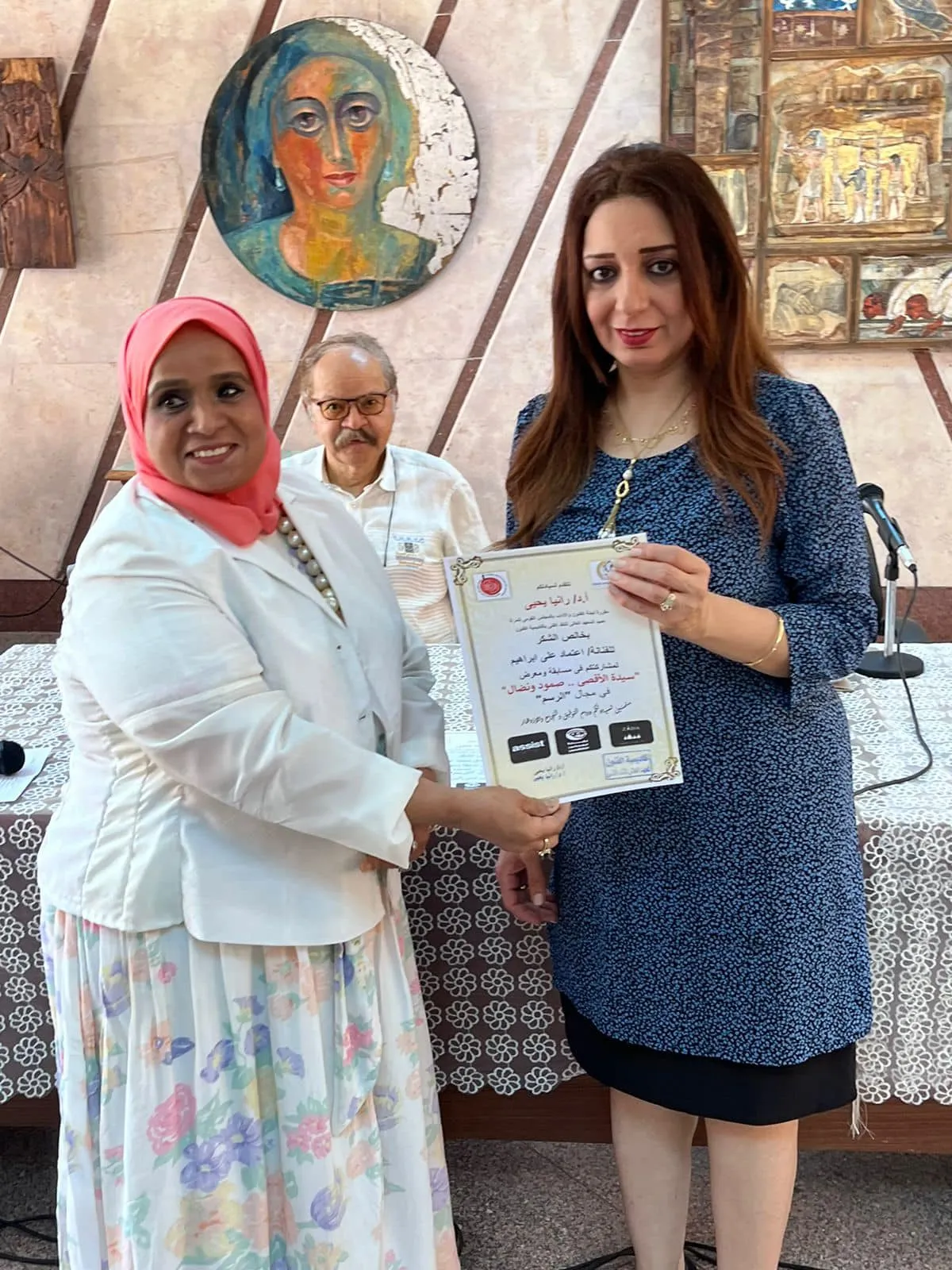 We also extend our thanks to Dr. Samar Saeed, Dean of the Higher Institute of Folk Arts, for her attendance. Certificates were also handed out to some of the participants in the previous exhibition who made us happy with their participation.