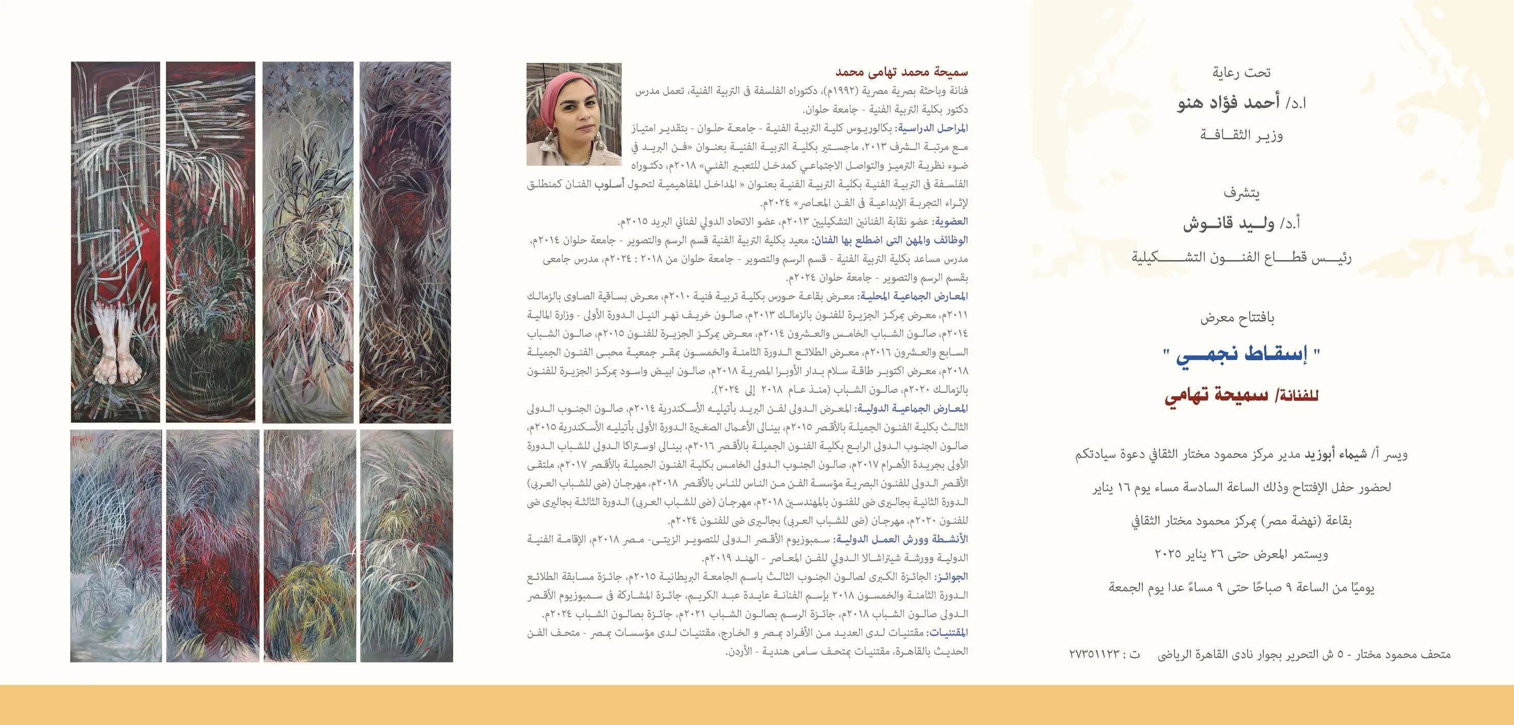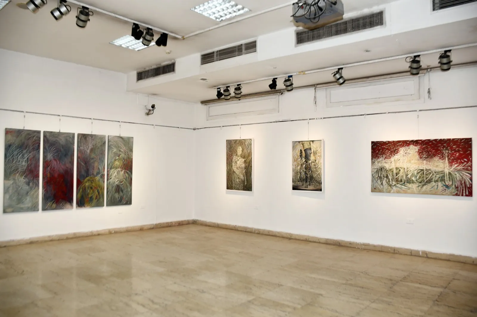 Prof. Dr. Walid Qanush, Head of the Fine Arts Sector, accompanied by Prof. Dr. Hamdi Abdullah - Full-time Professor at the Faculty of Art Education, Helwan University, opened the exhibition of artist Samiha Tohamy entitled "Star Projection" at the Nahdet Misr Hall at Mahmoud Mokhtar Cultural Center on Thursday, January 16, 2025.