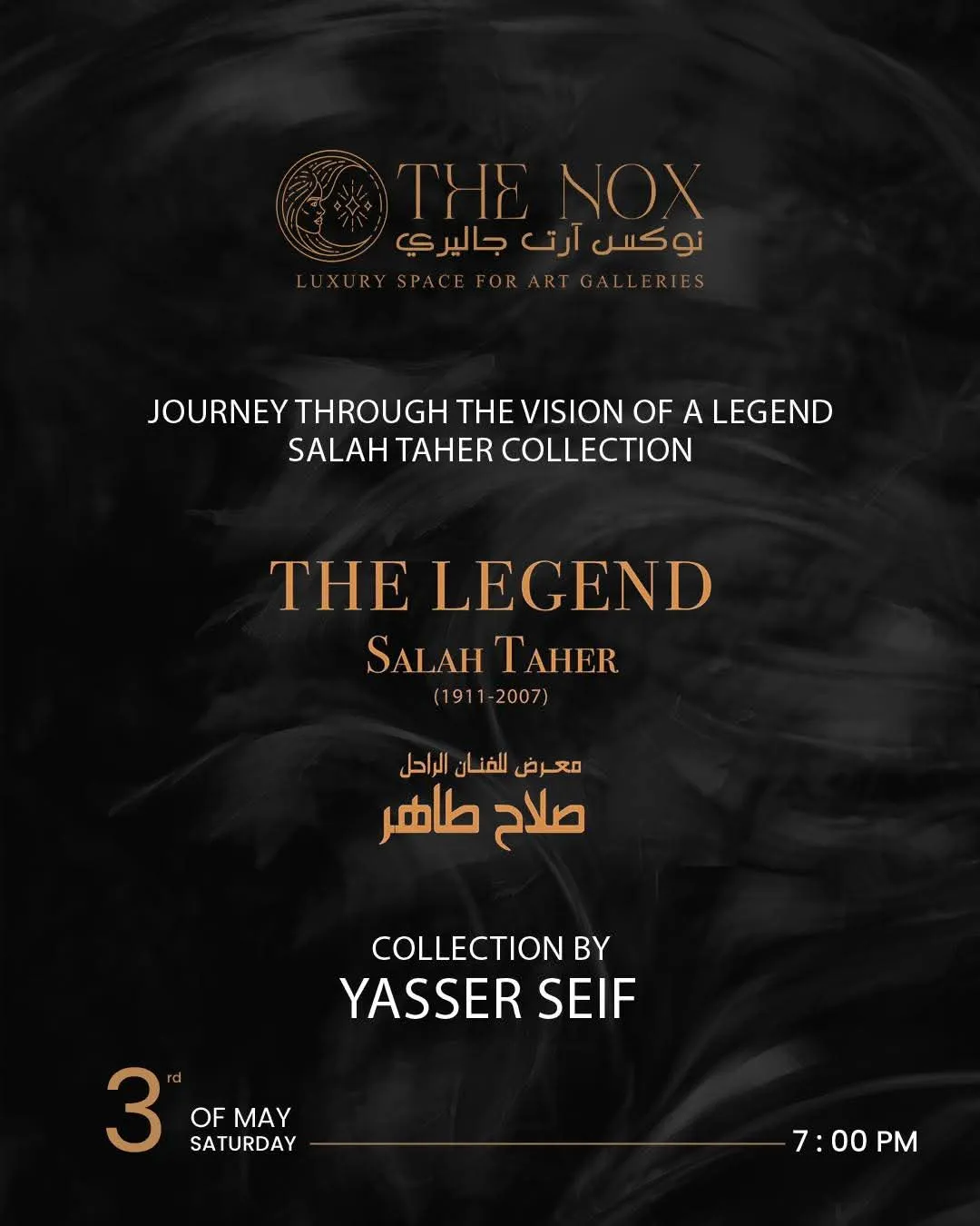 Nox Art Gallery & Eng. Yasser Seif, is honored to invite you to attend the exhibition: "Symphony of Colors" For the artist Salah Taher The exhibition features an exclusive collection of his privately held works, being showcased to the public for the very first time. Saturday, May 3rd, 2025 At 7:00 PM Nox Art Gallery North 90st. New cairo Your presence will be a great honor and joy.