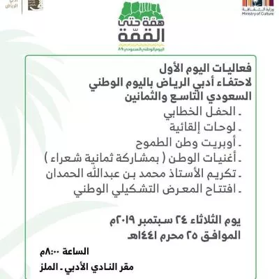 The activities of the first day of Riyadh literary celebration of the eighty-ninth Saudi National Day
