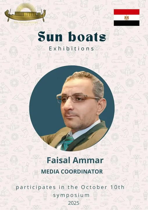 The fifth edition of the "Sun Boats" exhibition and forum opens in front of the Giza Pyramids in support of art tourism. The fifth edition of the "Sun Boats" International Forum will take place from October 10 to 16, 2025, in front of the Giza Pyramids. Artists from around the world will participate in this artistic and cultural event, aiming to support art tourism as a soft power to spread peace and enhance rapprochement between peoples. The event coincides with the anticipated opening of the Grand Egyptian Museum, a message affirming Egypt's leadership in sponsoring the arts and using them as a bridge for cultural dialogue and sustainable tourism. The exhibition will be held on October 15/16 at 6 pm in the Fine Artists Syndicate Hall at the Cairo Opera House. I would like to thank Akhbar El-Youm newspaper and journalist Nanis Ayman for their generous coverage. I also extend my sincere appreciation and gratitude to His Excellency Dean Dr. Mahmoud Ismail for his continued support of this international art event.