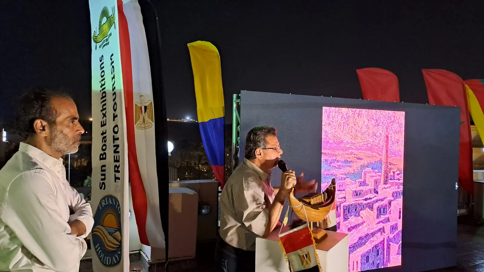Ismail Bakr, the festival organizer, emphasized that the forum aims to use the arts as a tool to spread peace and build global cultural awareness. Amr Ismail, director of Sun Boats Exhibitions, stated that there is a plan to promote Egypt globally through various artistic events both inside and outside the country.