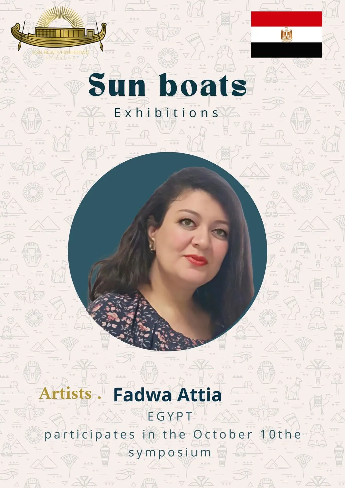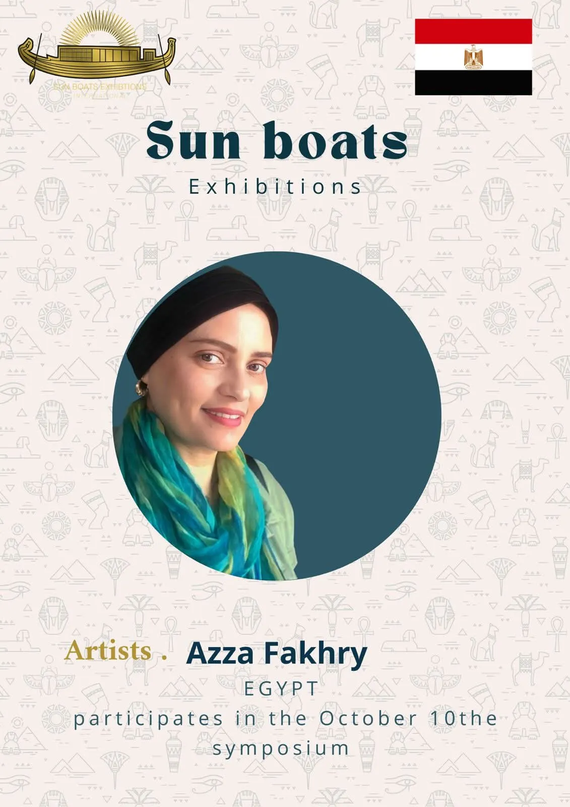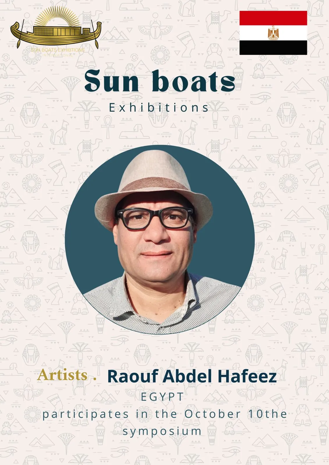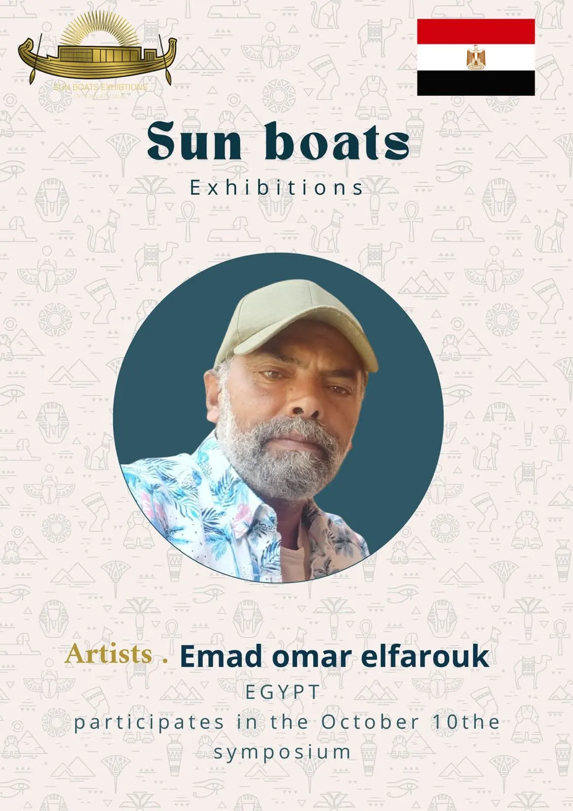 We are delighted and honored to welcome the talented artists from around the world to participate in the 5th Sun Boats International Art Symposium! Welcome to Egypt, the land of ancient civilization, artistic creativity, and inspiring history. Through this event, we aim to create a space for inspiration, exchange of experiences, and strengthening cultural connections among artists from all corners of the world The coming days will be filled with inspiring artistic encounters, innovative workshops, and exhibitions showcasing the finest artworks, offering a unique experience that reflects the diversity and elegance of creativity. We look forward to sharing your artistic stories, inspiring ideas, and creations that enrich the global art scene, and we hope this journey will be an unforgettable experience for all participating artists and visitors alike.