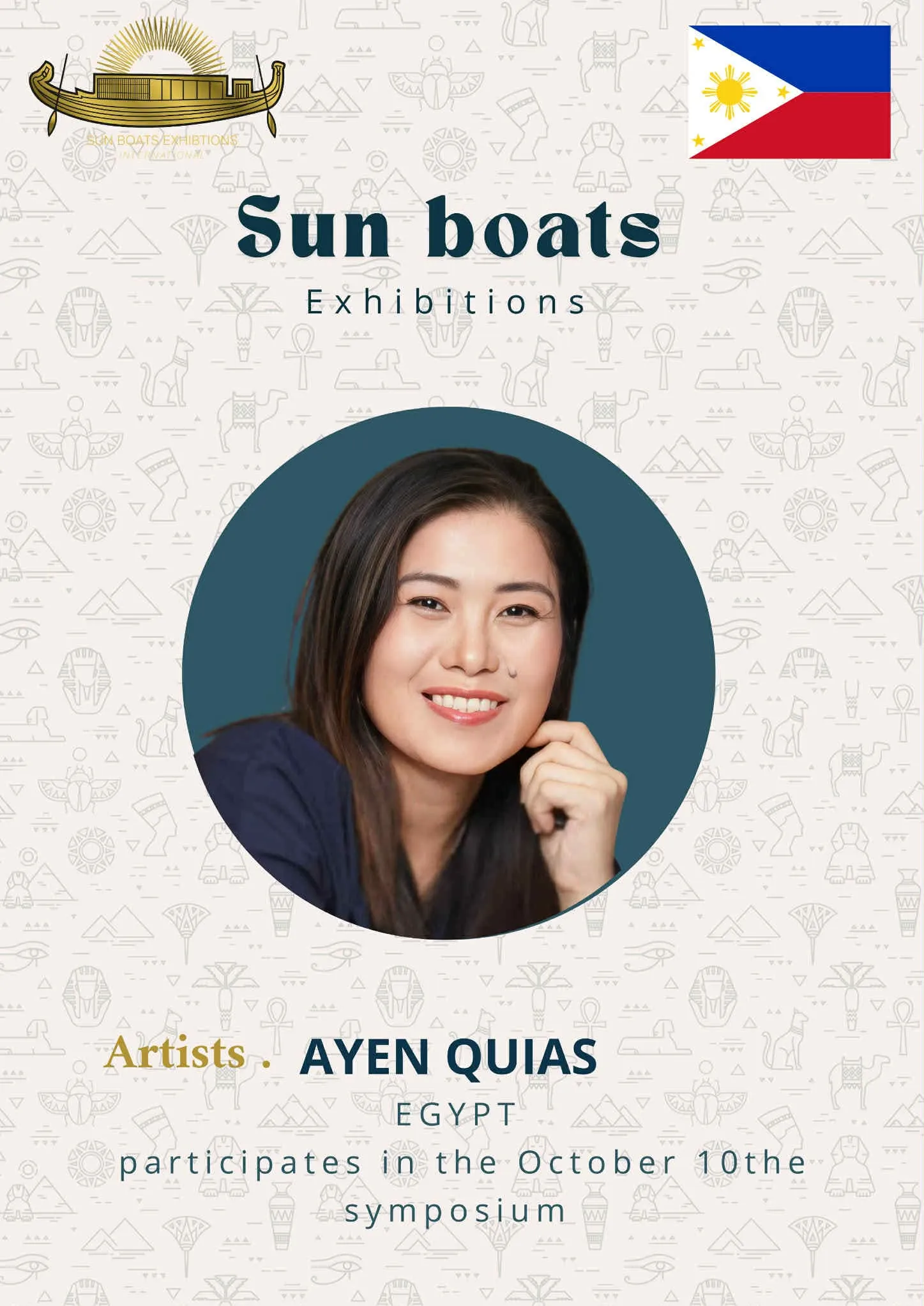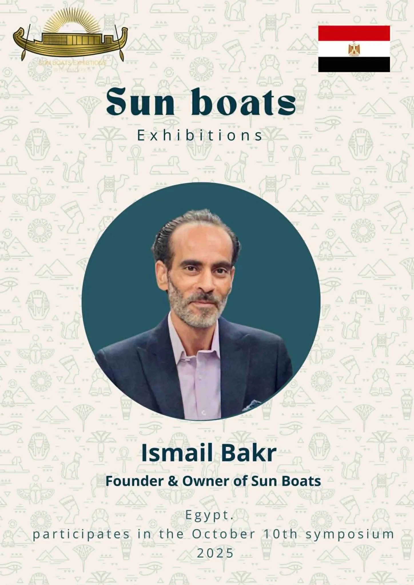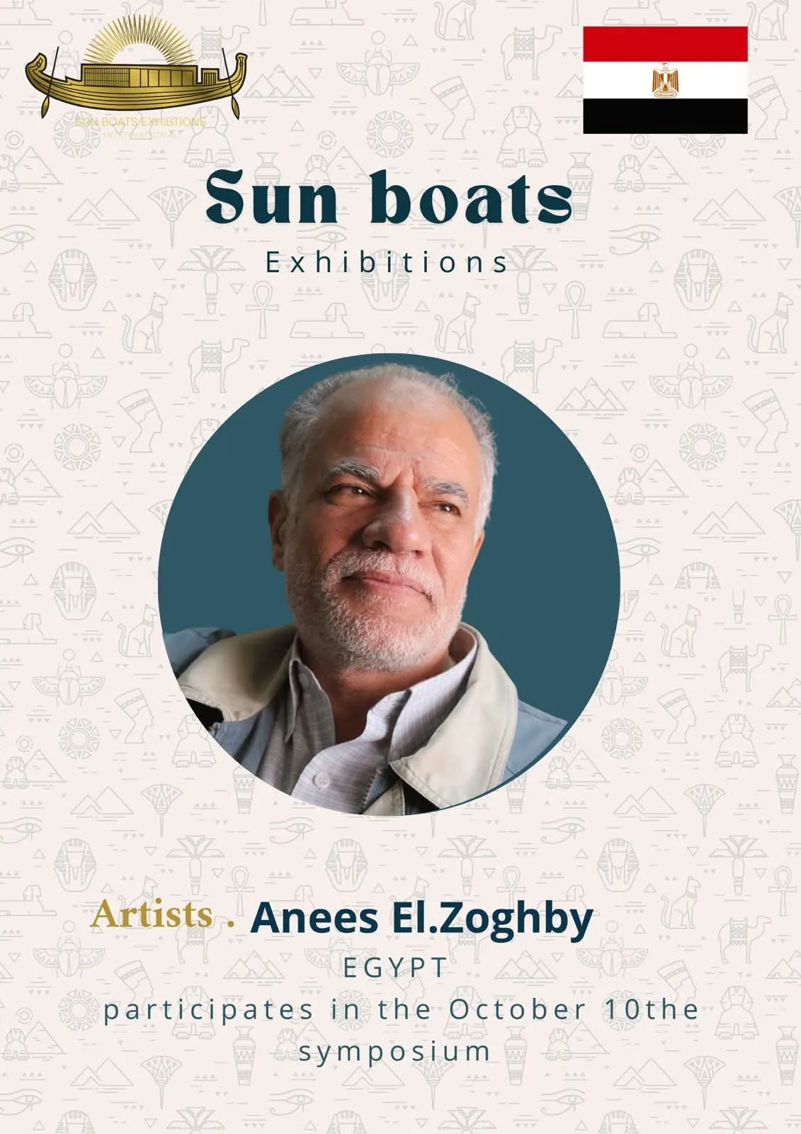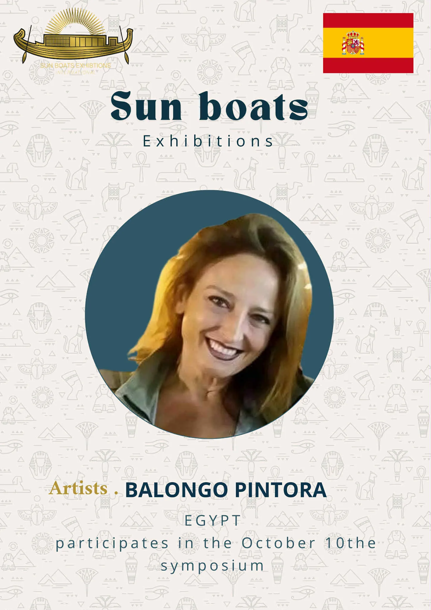 We are delighted and honored to welcome the talented artists from around the world to participate in the 5th Sun Boats International Art Symposium! Welcome to Egypt, the land of ancient civilization, artistic creativity, and inspiring history. Through this event, we aim to create a space for inspiration, exchange of experiences, and strengthening cultural connections among artists from all corners of the world The coming days will be filled with inspiring artistic encounters, innovative workshops, and exhibitions showcasing the finest artworks, offering a unique experience that reflects the diversity and elegance of creativity. We look forward to sharing your artistic stories, inspiring ideas, and creations that enrich the global art scene, and we hope this journey will be an unforgettable experience for all participating artists and visitors alike.
