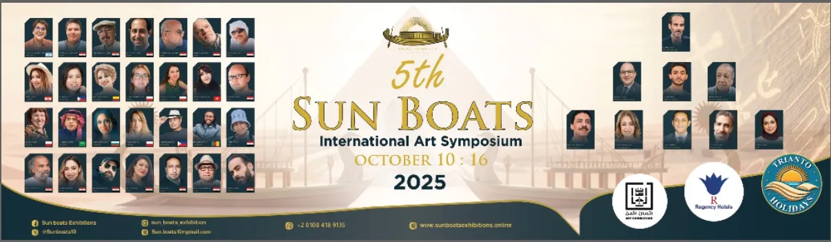 The fifth edition of the International Sun Boats Exhibitions Symposium will kick off on October 10th at the Regency Pramesa Hotel overlooking the Giza Pyramids. The event will feature 35 artists from 25 countries across the globe, including Egypt, Morocco, Saudi Arabia, Lebanon, Iraq, Sharjah, Argentina, Spain, France, the United States, Germany, England, Italy, and others.