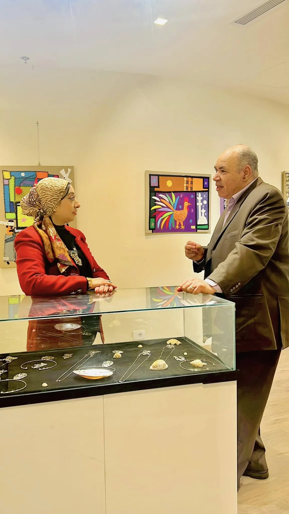 Nox Art Gallery is honored to invite you to attend the "The Big Night" exhibition by solo artist Ibrahim Al-Baridi, recipient of the State Encouragement Award, and jewelry artist Rehab Abd ElAal. This will take place next Saturday, the 8th of Ramadan and March, at 8:00 PM. Artist Ibrahim Al-Buraidi is known for his paintings that draw inspiration from the festive and carnival atmospheres that express authentic Egyptian life, including his work, the operetta "The Big Night." Al-Buraidi uses colorful fabric scraps in his works, combined with drawing using "Al-Marj" thread, giving his paintings a unique character. His works are characterized by being very personal, reflecting the artist's personality and stemming from his wonderful feelings, and are marked by a spirit of joy and happiness. Jewelry artist Rehab Abd ElAal holds a Ph.D. in Art Education, specializing in metalwork. She excels in creating artistic jewelry pieces from silver and precious stones. ☎️: 01119899824
