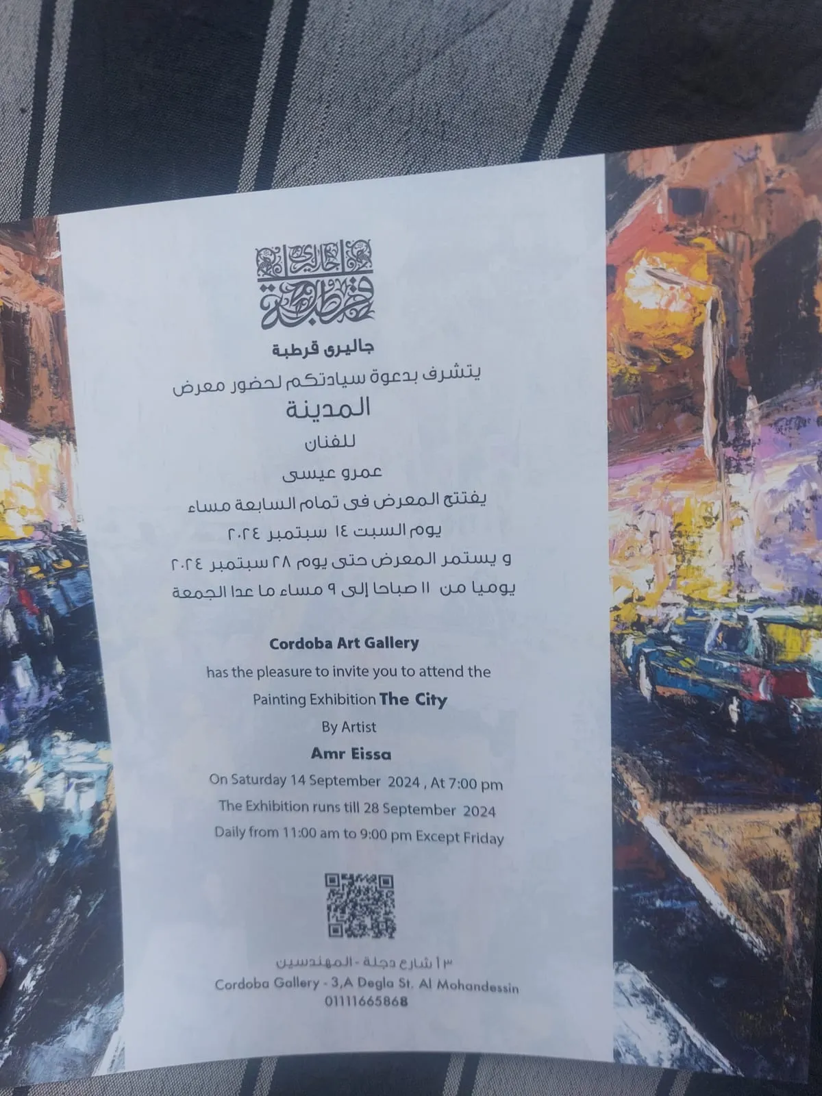 Cordoba Art Gallery has the pleasure to invite you to attend the Painting Exhibition The City By Artist Amr Eissa On Saturday 14 September 2024, At 7:00 pm The Exhibition runs till 28 September 2024 Daily from 11:00 am to 9:00 pm Except Friday Cordoba Gallery-3,A Degla St. Al Mohandessin 01111665868