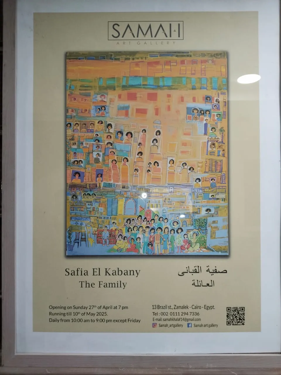 SAMAHART GALLERY Safia El Kabany The Family Opening on Sunday 27th of April at 7pm. Ongoing until 10th of May 2025. Daily from 10:00 am to 9:00 pm. Except Friday 13 Brazil st,. Zamalek - Cairo - Egypt Tel: 00201112947336