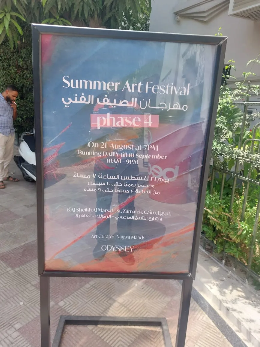 Opens on August 21, 2024 at 7pm and continues daily until September 5, from 10am to 9pm Odyssey Art Coordinator: Nagwa Mahdy Sheikh Al Marsafi Street Zamalek Cairo, Egypt 25784494- 01001704554,