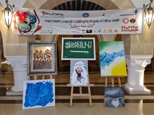 The First International Academic Forum for Fine Arts, Painting, Watan, from March 19, 2022 to March 24. Organized by the National Youth Coaching Association, Monastir, Tunisia, with the support of the Sparta University of Libya, the Tunisian Ministry of Culture and Tourism, the Libyan Ministry of Culture, and the municipality of the city of Monastir, with the participation of artists from Tunisia, Libya, Algeria, Morocco, France, Egypt, Saudi Arabia, Iraq, Palestine, Denmark, Jordan, and Lebanon, Syria, Sudan and Oman. The festival was held at the Regency Hotel Monastir