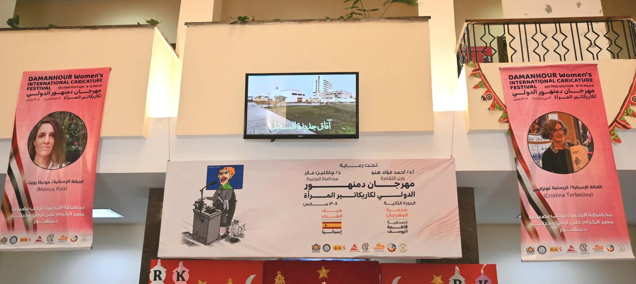 Under the slogan "She can" and in conjunction with International Women's Day The second session of the Damanhour International Women's Caricature Festival kicks off The festival includes a huge exhibition of the works of 301 artists from 44 countries around the world and drawings by Egyptian caricature pioneers about women Spain is the guest of honor of the second session .. and the late / Fatima Al-Youssef - founder of "Rose Al-Youssef" magazine, the personality of the festival In conjunction with the celebration of International Women's Day, and within the framework of supporting and empowering women and enhancing their role in arts and culture. Under the patronage of Professor Dr. / Ahmed Fouad Hano - Minister of Culture, Dr. / Jacqueline Azer - Governor of Beheira, and Counselor / Amal Ammar - Head of the National Council for Women. Today, the activities of the second session of the Damanhour International Women's Caricature Festival, organized by Beheira Governorate in coordination with the Beheira branch of the National Council for Women, the Damanhour Public Library of Egypt, and the Abdullah Al-Sawy Foundation for the Preservation of Egyptian Caricature Heritage, were launched under the slogan "She... Can" in support of women's empowerment and strengthening their role in the artistic field, during the period from March 8 to 13.