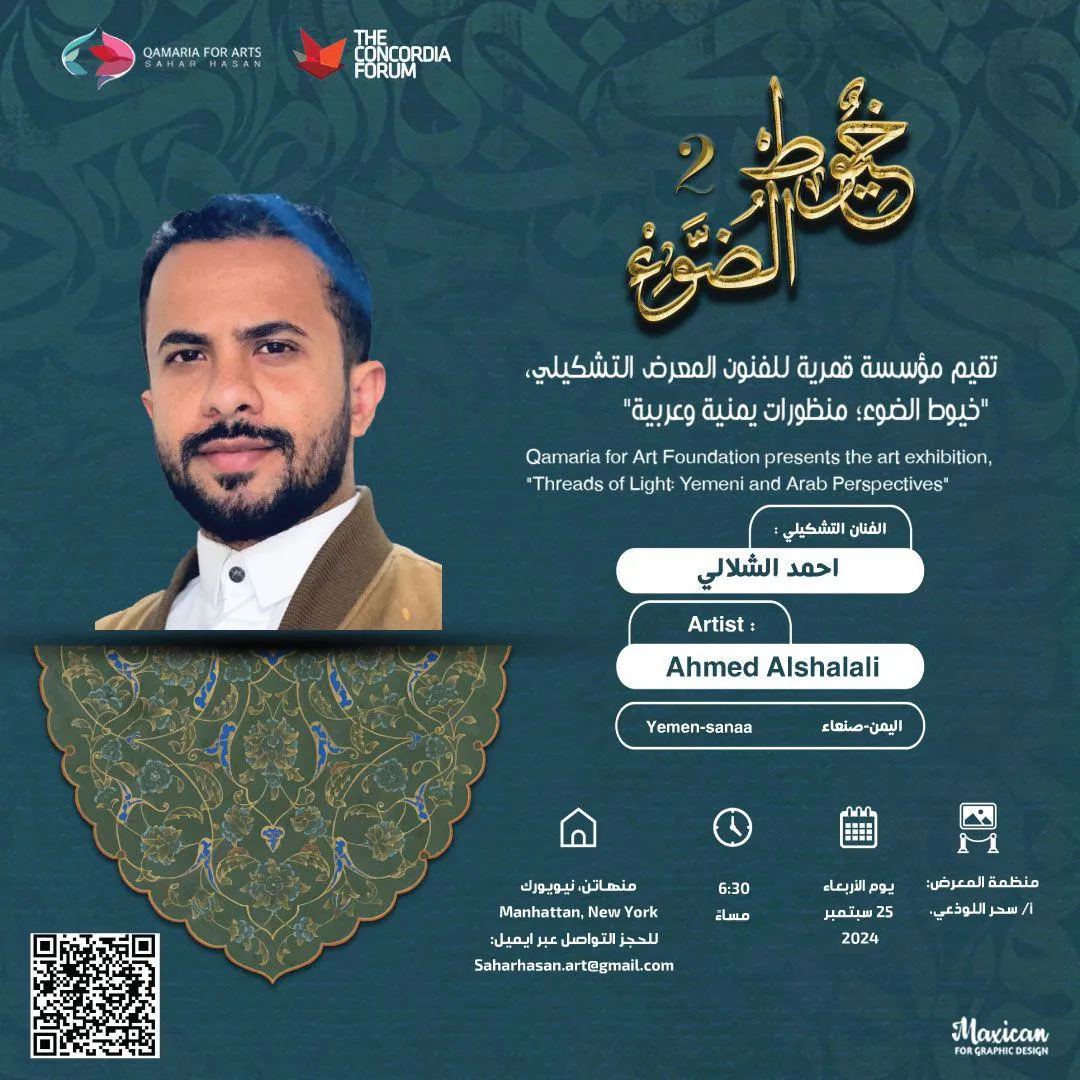 The exhibition is a continuation of the “Threads of Light” exhibition held in Ontario, Canada last month, and displays a variety of visual and photographic works by a number of professional artists from Yemen and the Arab world, highlighting the aesthetic aspects of Islamic and Arab arts.