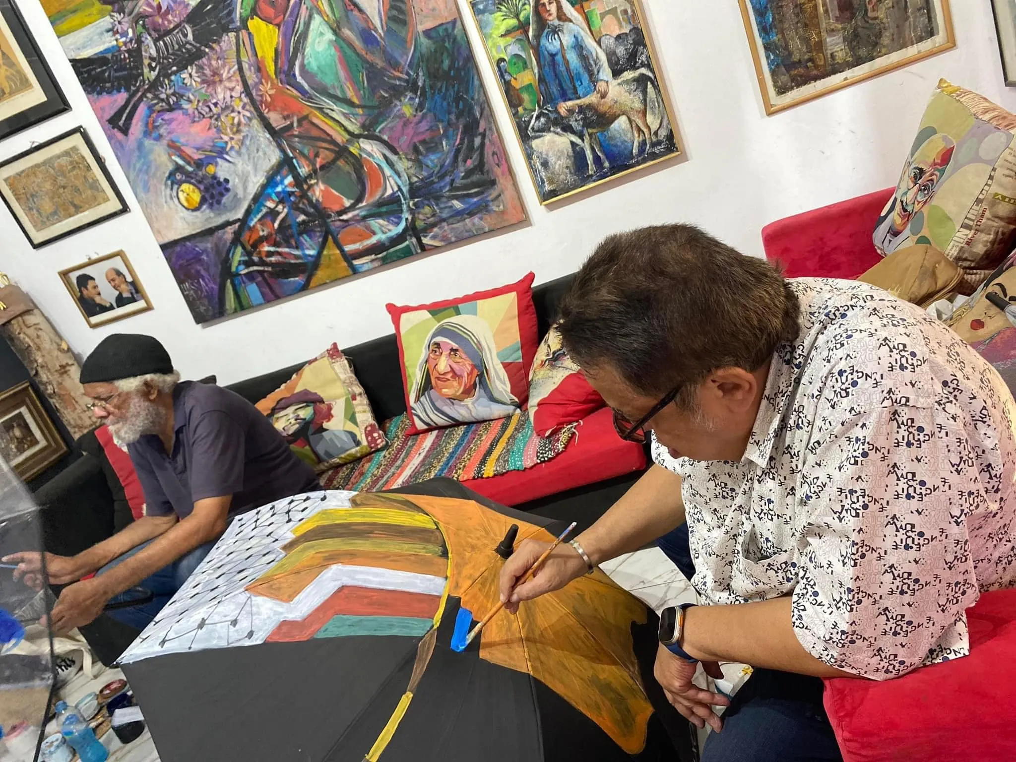 Friday 16/08/2024 after Friday prayers at our house museum and thank God it's not an ordinary day and out-of-the-box ideas, an international media, literary and visual arts gathering of more than 30 truly respectable people. Today we were honored by the first international festival for drawing on the umbrellas, Egyptian, Saudi and Sudanese. The beautiful thing is that we raised the name of Palestine and Gaza on the highest peak in the museum. We wrote poems and drew Palestine in the sky of the museum. Thank you very much to the executive director of the museum, the artist Major General Mahmoud Abden Thank you very much to the artist, the event commissioner, Mr. TaHa Ashmawy @ Artist Dr. Ashraf Abdel Kader The authentic Sudanese-Egyptian artist Adil Kebada My brother, the beautiful artist Dr. Ihab Abdullah Al-Asyuti The authentic Egyptian artist Fathy Ali The authentic Egyptian artist Reda Khalil Salah Al-Rashidi The authentic photographer The artist Maia Matar The artist Dr. Mona Shoair Mona Shoair The artist Wahba Attar Wahba Attar Saudi Arabia Anas Alawi The Saudi artist The artist Samar La Paz The writer, Ms. Abeer Al AttarAbeer Al Attar The TV team covering the event, the director, Mr. Hala Thapet and all the brilliant work team 2 TV cameras to cover the event The beautiful artist Ahmed Gharib The artist, the poet Ahmed Nasr The artist, Ms. Rehab Tharwat The artist Ahmed Hamed The artist Ahmed Omar Al Ahram newspaper The media, Ms. @Samar Sharif and her family, the artist Dr. Ahmed Omar The artist Dr. Enas Saqr And our house museum Okasha Thank you to Uncle Farag and the family of Tamsih Al Nil friends Thank you, Uncle Mustafa Al Fatir, a masterpiece Mostafa Zahra Thank you, Engineer Mahmoud Mashref Mahmoud Meshref Professor Amr Nabil and his family, Dr. Faten Farouk
